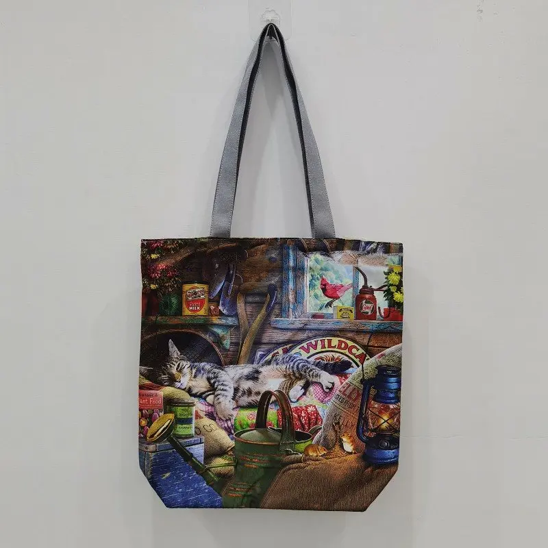 Женская дизайнерская сумка-тоут на плечо с принтом кота, ручная пляжная сумка, вместительная сумка для покупок