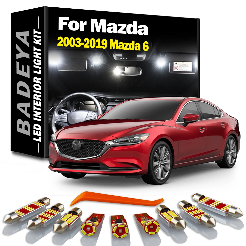 BADEYA белый автомобильный аксессуар Canbus безошибочный светодиодный светильник для салона, комплект для Mazda 6, 2003-2019, карта для чтения, купольная лампа для номерного знака