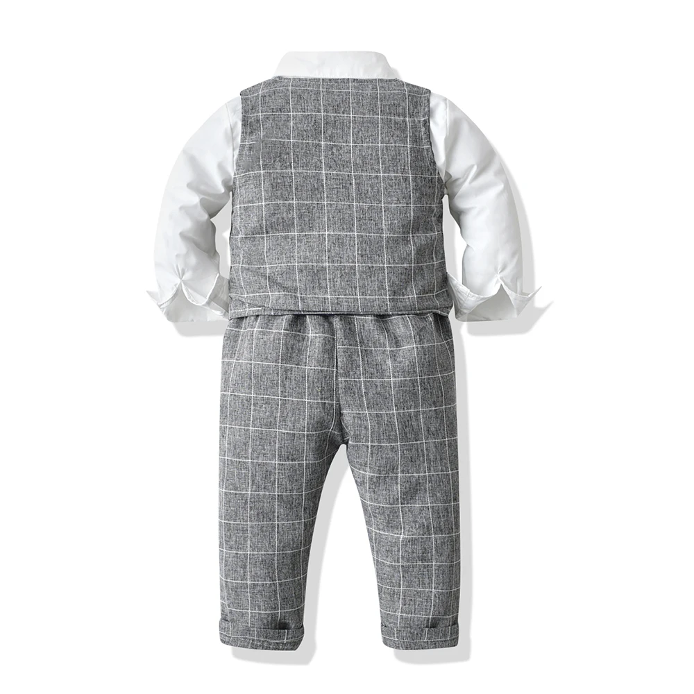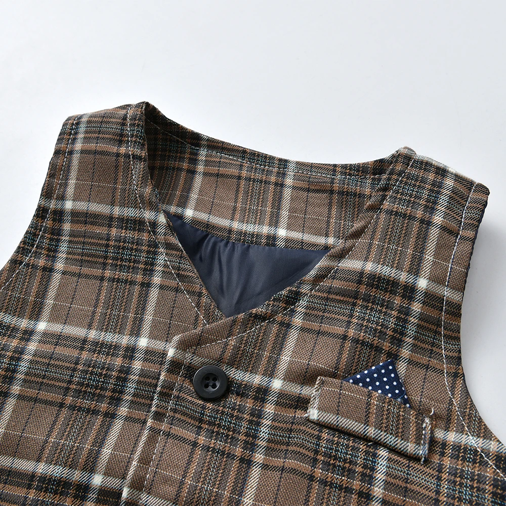 Комплект одежды для мальчиков 2-7 лет, хлопковый формальный клетчат...