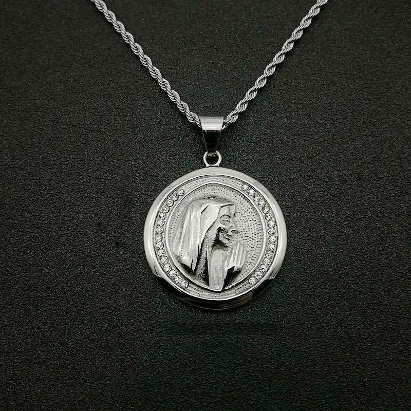 Модное классическое ожерелье с кулоном в религиозном стиле с изображением Богородицы католической молитвы для мужчин, повседневный амулет, Подарочная бижутерия