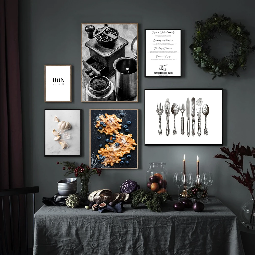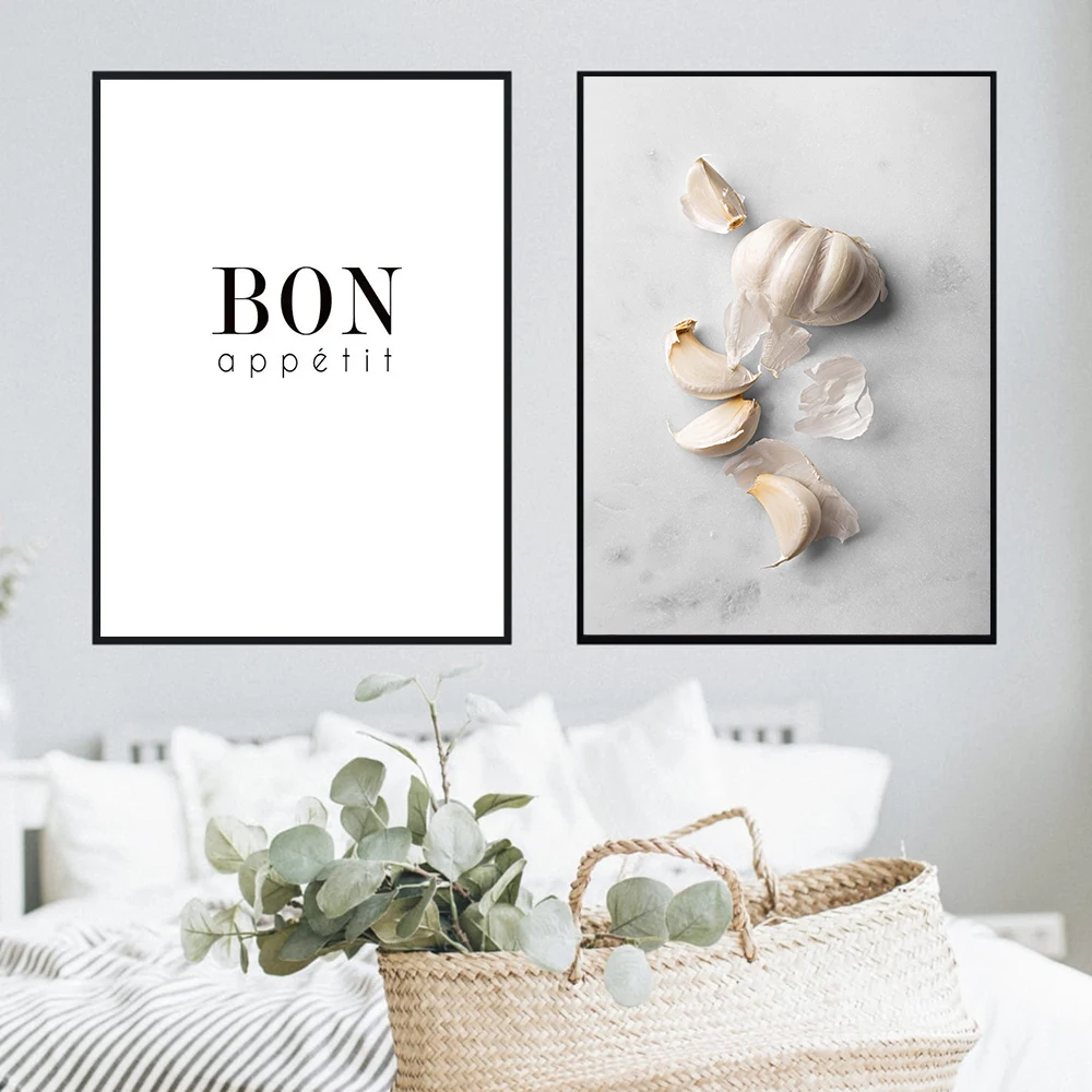 Художественный декор для кухни, постеры с изображением чеснока, кофе и гида, красивая печать, черно-белая настенная Картина на холсте для столовой