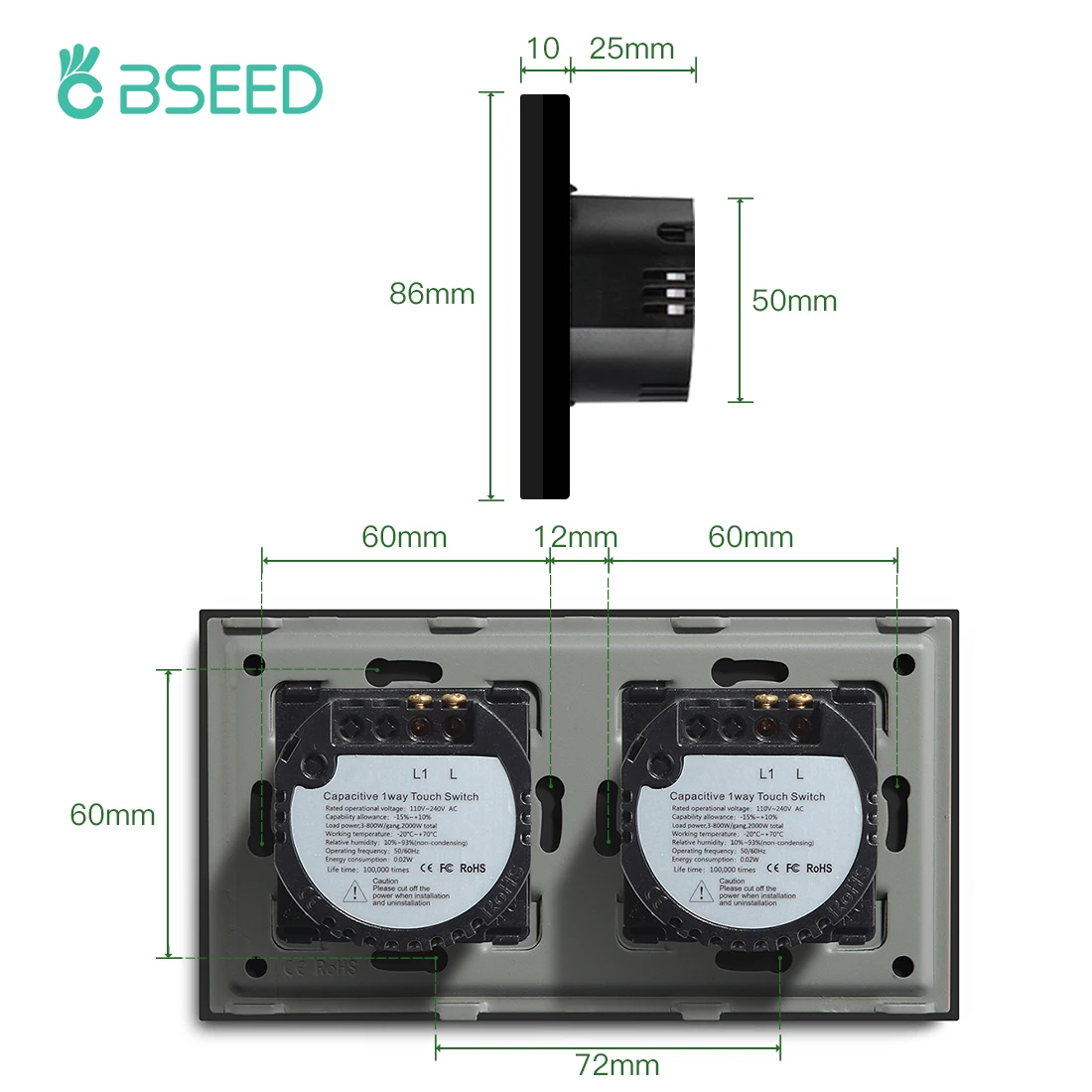 Bseed европейский и русский стандарт 86 мм 157 мм жемчужное Хрустальное стекло одинарная панель черная настенная сенсорная база переключатель DIY часть для улучшения дома