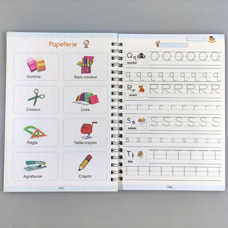 Французская Волшебная книга, которая может быть использована повторно, французская буквенно-цифровая каллиграфия для письма детей