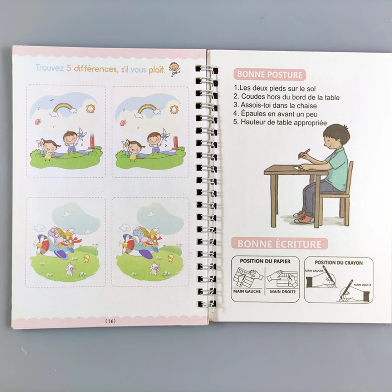 Размер: 130 мм * 190 ммЯзык: французскийМатериал: белый картонПосылка включает в себя: 4 книги + подарокПодарок: набор волшебных ручекМы использовали волшебную ручку для письма. После написания в течение определенного периода времени шрифт исчезнет и вернется в исходное состояние, которое можно использовать повторно.