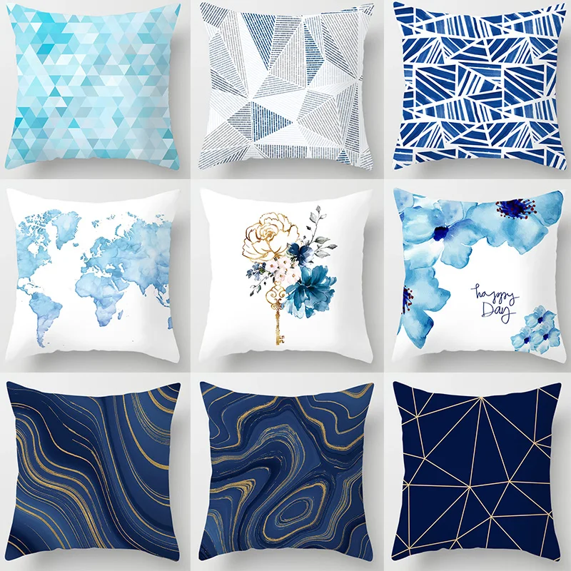 Блестящий Мраморный Агат наволочка синяя геометрия цветок полиэстер Подушка Чехол для автомобиля Диван Декоративные наволочки Декор для дома чехол s домашний декор