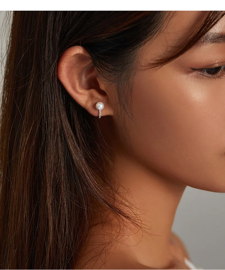 Серьги-гвоздики женские из серебра 925 пробы с жемчугом