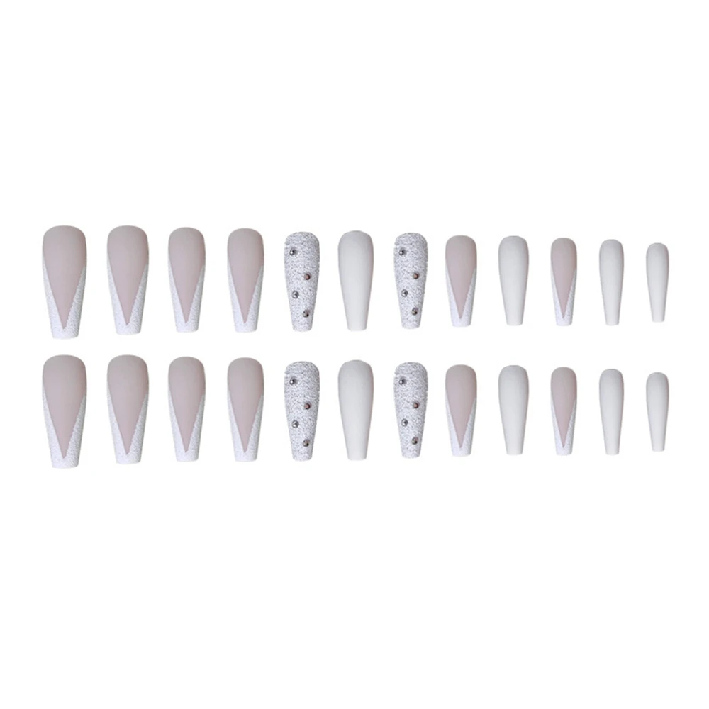Накладные ногти с длинным гребнем, 24 шт.кор., накладные ногти со съемными французскими балеринами, носимые накладные ногти с полным покрытием