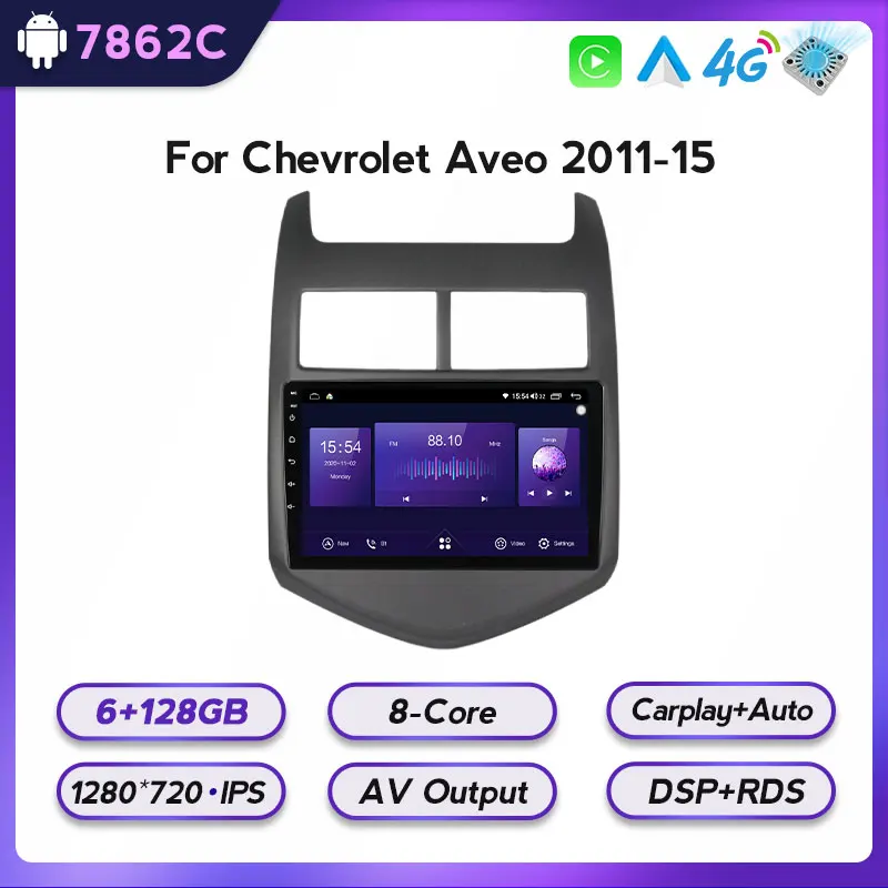 Автомобильный мультимедийный плеер, 8 ядер, 6 + 128G, Android 11, для Chevrolet Aveo Sonic 2011, 2012, 2013, 2014, 2015, GPS-навигация, Carplay