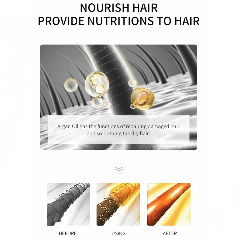 1. Эфирное масло для волос в Марокко богато марокканским «жидким золотом» аргановым маслом, которое может восстановить поврежденные волосы, разгладьте сухие волосы и создайте защитную пленку для защиты волос от повреждения солнечных лучей и других вредных веществ.