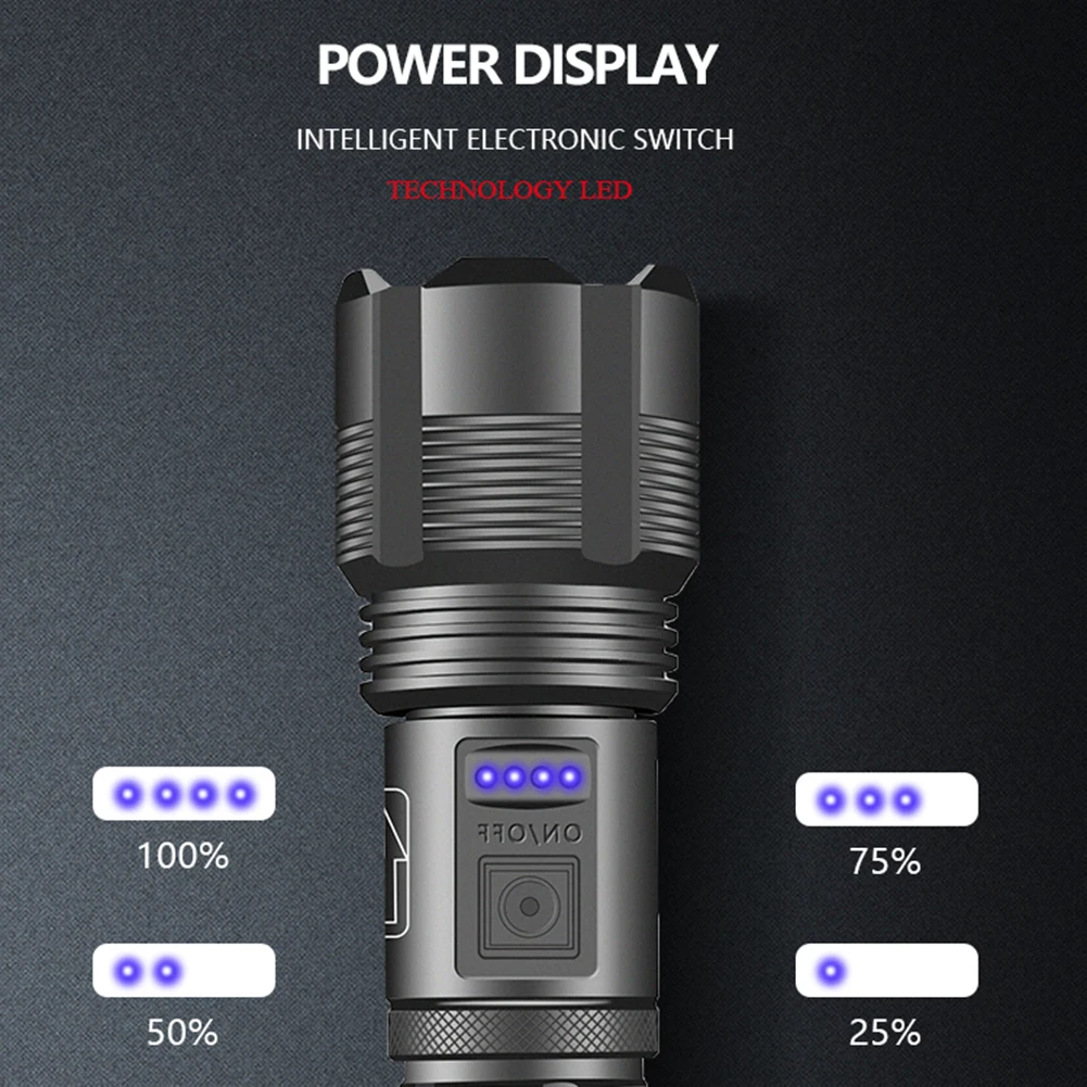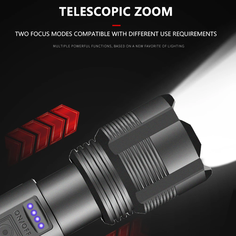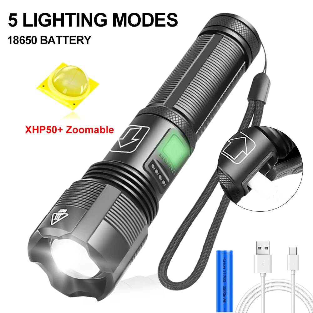 Перезаряжаемый светодиодный фонарик, USB-фонарик XHP50, самый мощный тактический фонарик, 5 режимов, 18650 водонепроницаемый ручной фонарь с зумом