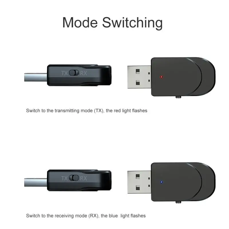 Как использовать: Переключитесь в режим передачи (TX), Красный светильник мигает, одновременно включается динамик Bluetooth или Bluetooth-гарнитура, он будет автоматически сопряжен. После успешного сопряжения загорится красный индикатор.
