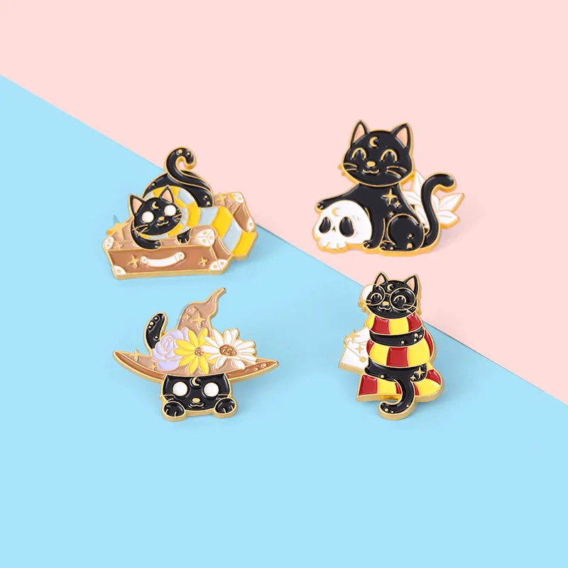 Эмалированная заколка в виде черной ведьмы, кошек, черепа, искусств...