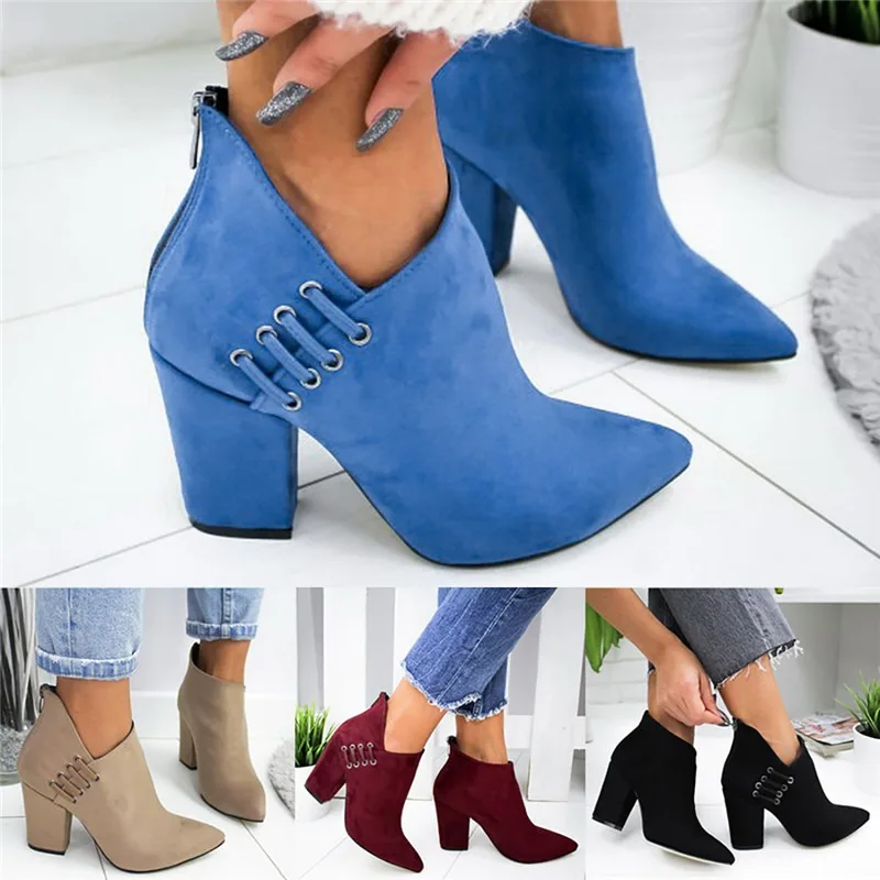 Женские ботильоны на высоком каблуке, повседневные ботинки на средн...