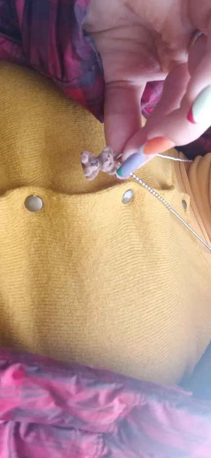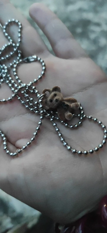 Медвежулька. Маленький медвежулька. Размер с ноготь. Проработан, на мордочку симпатичный, ощутимый по весу. Цепь до середины груди. Изделия без брака. Носить буду в качестве создающей НГ-настроение приколюшки.