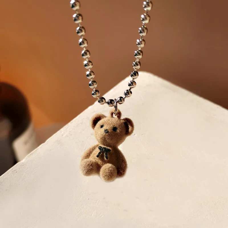 Ожерелье с подвеской в виде симпатичного флокирующего медведя для женщин, девушек, подростков, милые медведи, Очаровательное ожерелье с подвеской в виде животного, женские модные украшения