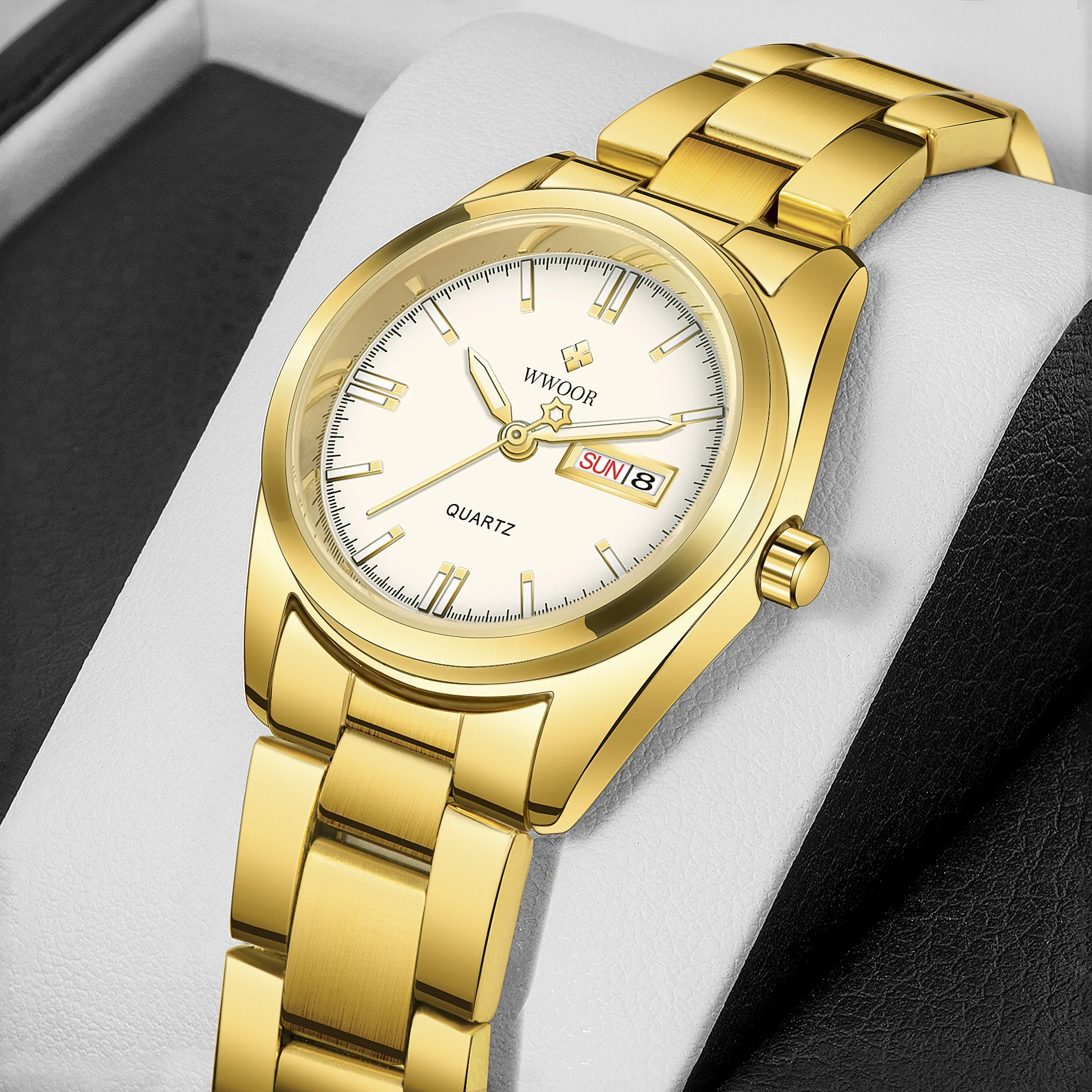 WWOOR 2021 Новинка Топ Бренд роскошные женские золотые часы повседневные Модные Кварцевые водонепроницаемые наручные часы из нержавеющей стали Relogio Masculino