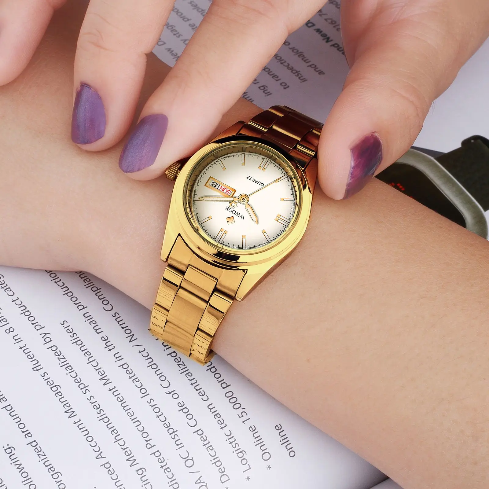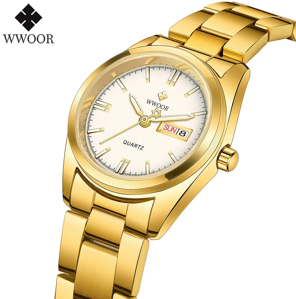 WWOOR 2021 новые роскошные женские золотые часы ведущей марки, повседневные Модные Кварцевые водонепроницаемые наручные часы из нержавеющей стали, мужские часы