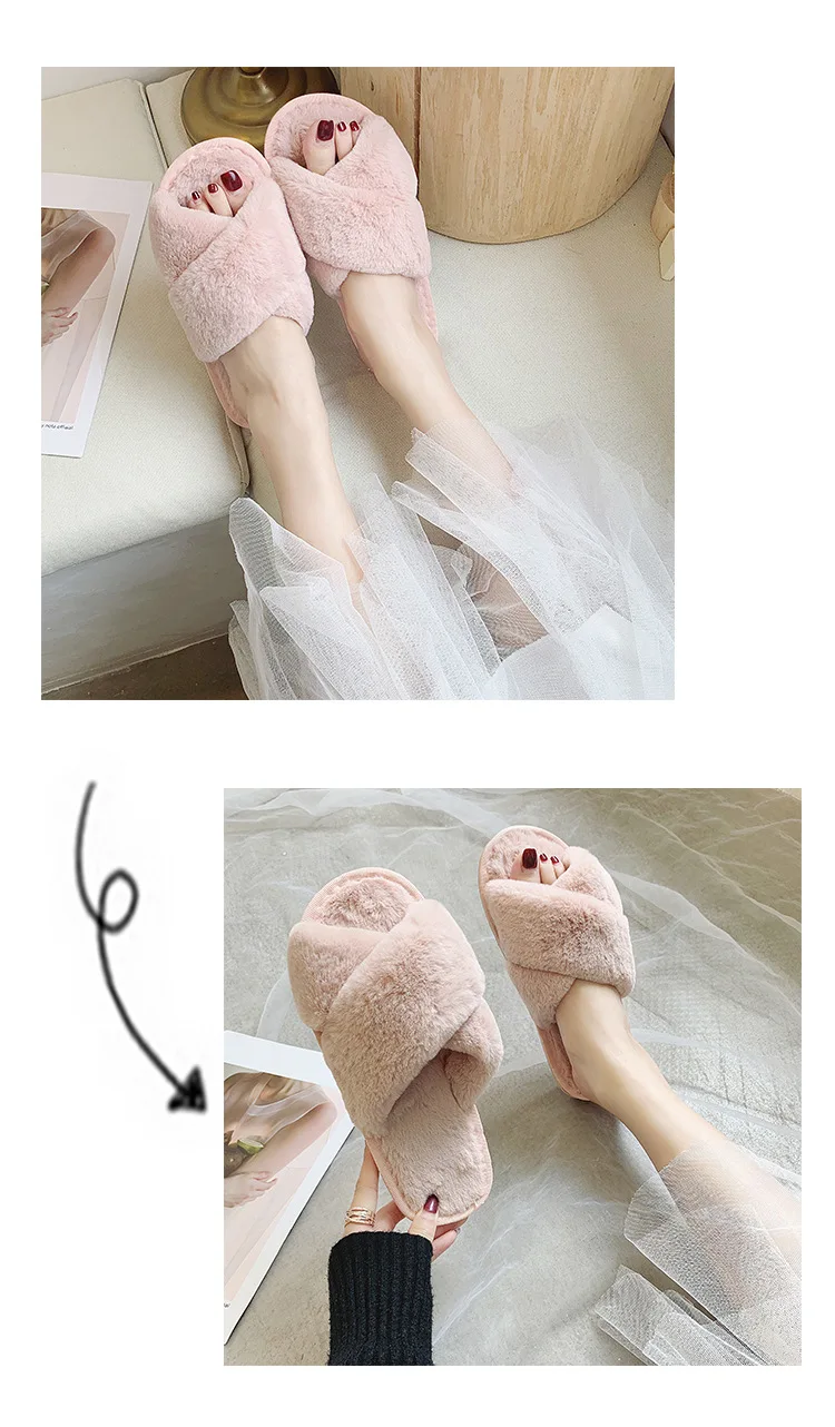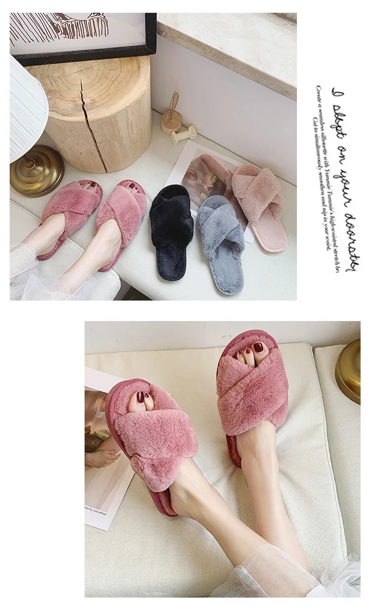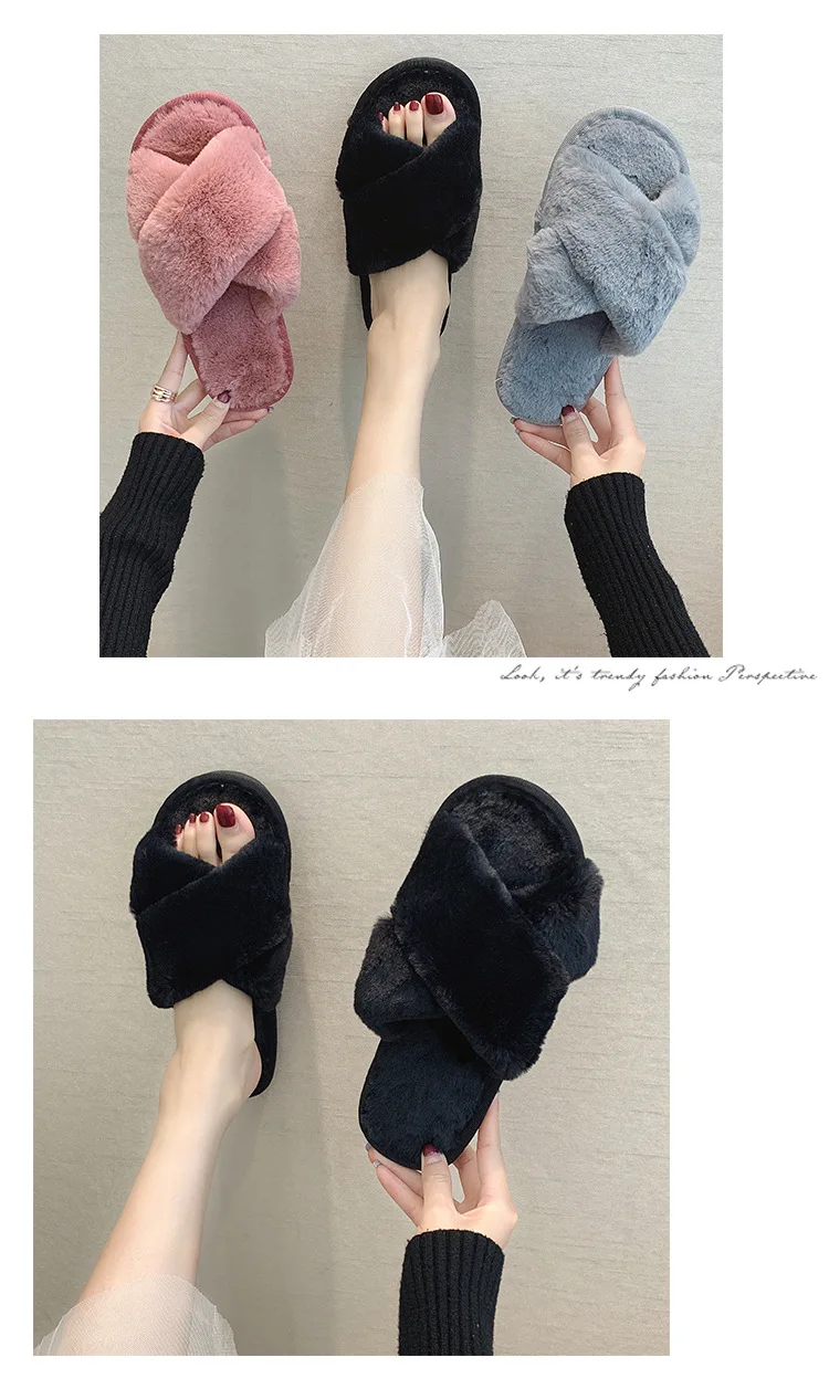 Сланцы женские зимние с искусственным мехом, теплые пушистые шлепан...