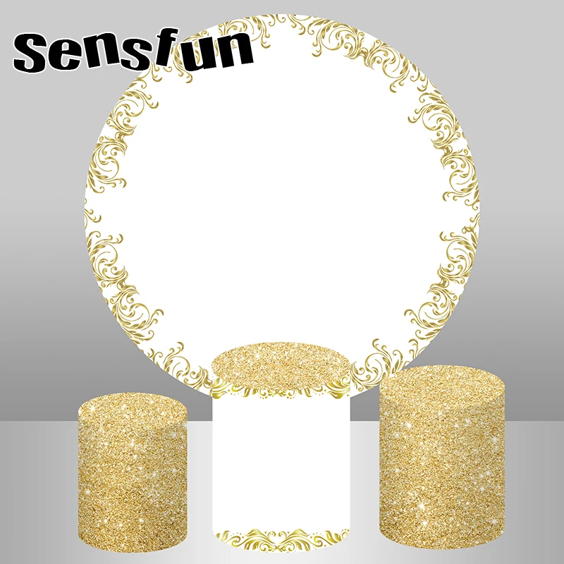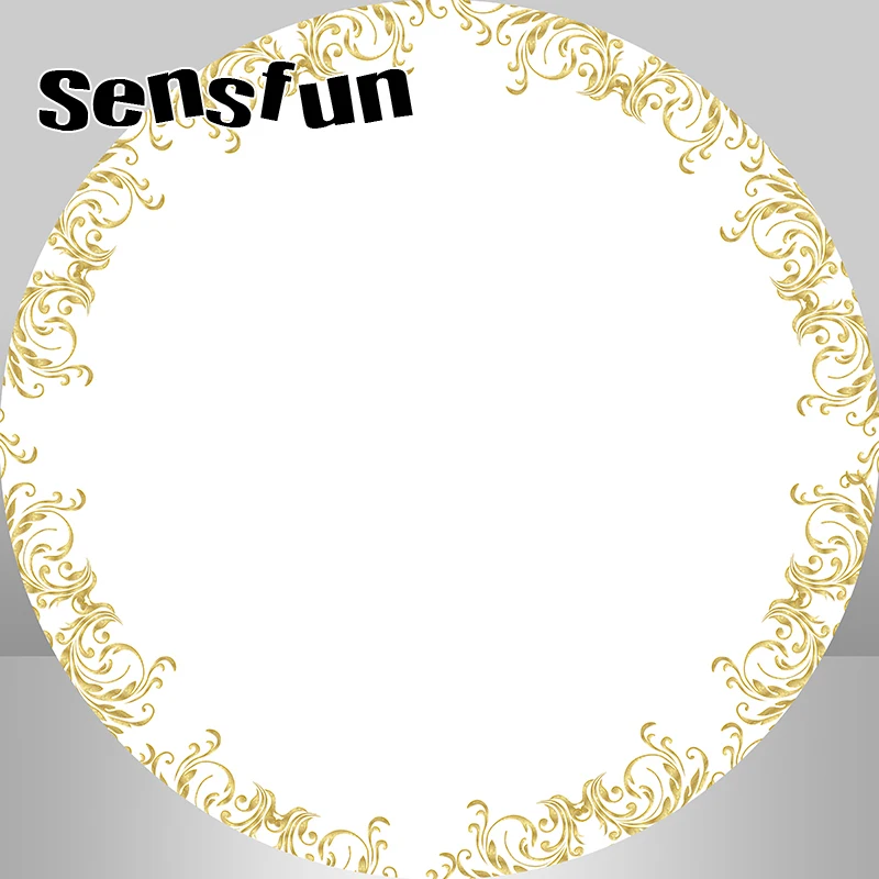 Белый золотой блестящий рисунок круглая задняя крышка дети крещение день рождения Свадебная вечеринка фотография задний фон накладки на заказ