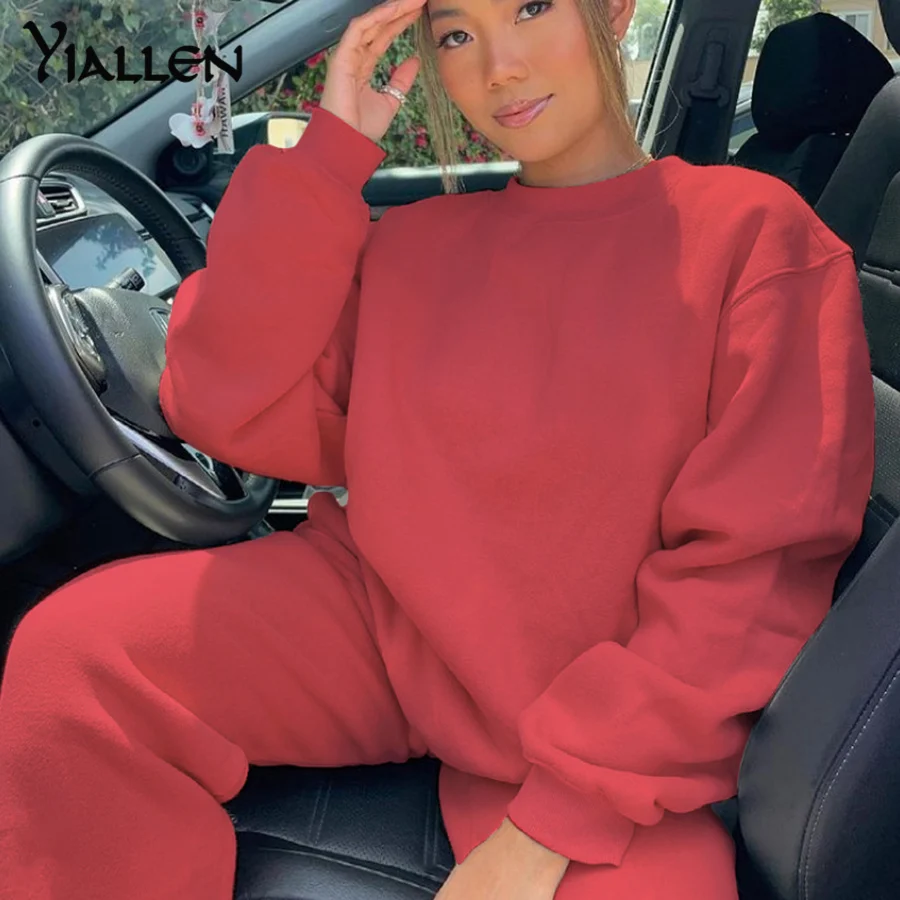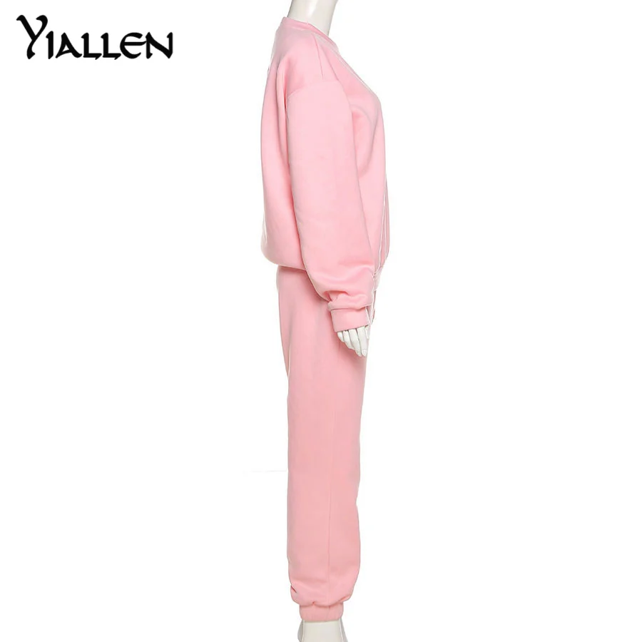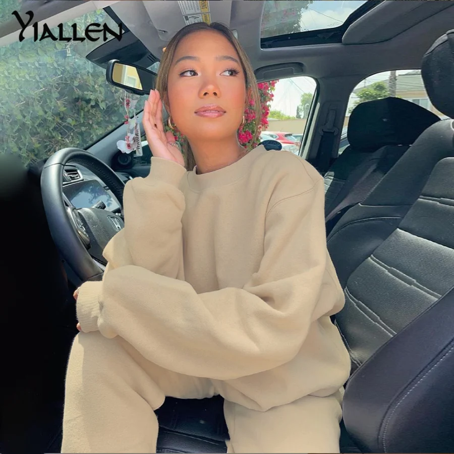Женский Повседневный комплект Yiallen, комплект из двух предметов, Топ с длинным рукавом и круглым вырезом и эластичная талия для активного отдыха в стиле Харадзюку на раннюю осень