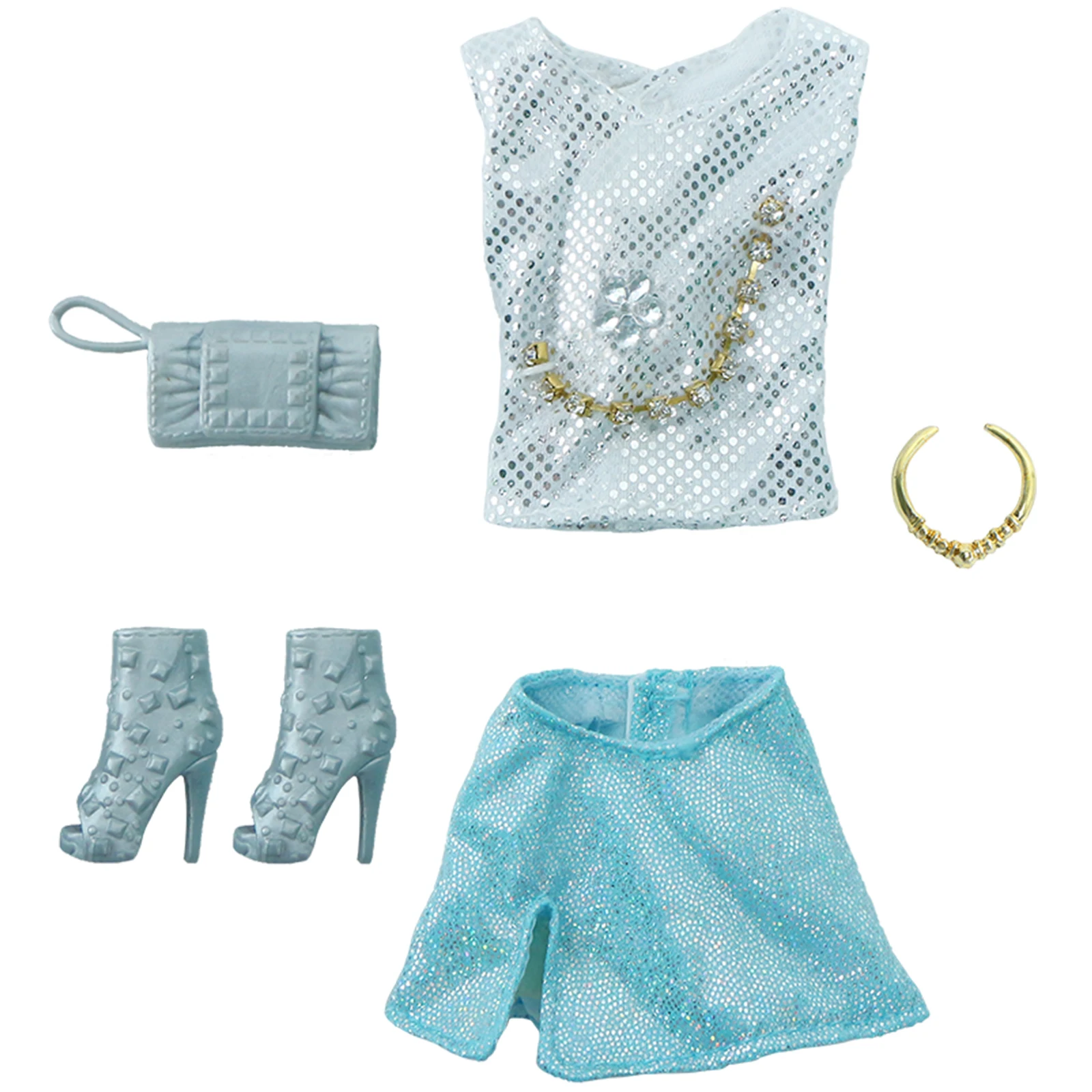 1x крутой Блестящий наряд серебристый жилет синий мини на сумку на юбку сандалии наряд ожерелья Одежда для куклы Барби Одежда и аксессуары