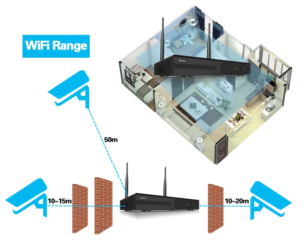 Беспроводное соединение между камерами и сетевым видеорегистратором, беспроводная передача до 50 метров (без препятствий