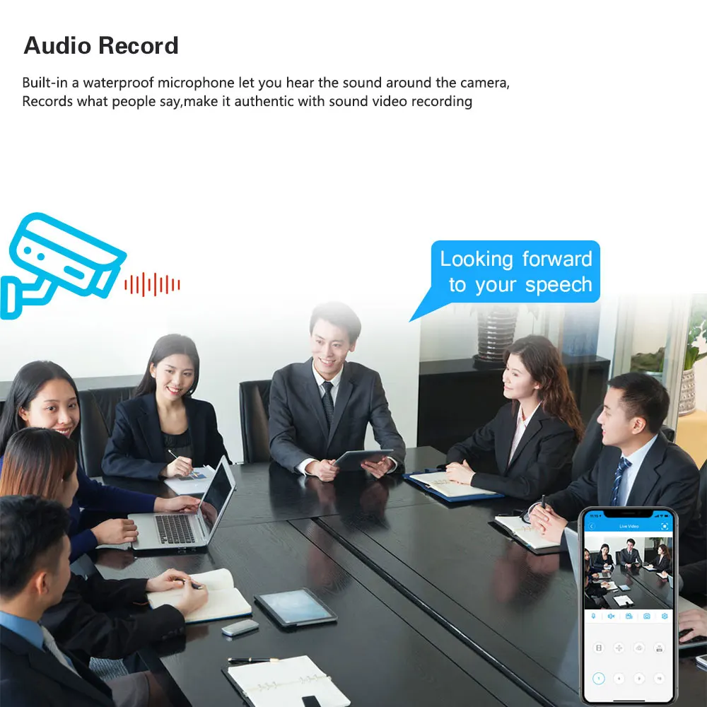 Встроенный водонепроницаемый микрофон позволяет слышать звук вокруг камеры, записывать разговоры людей, делать его достоверным с помощью записи звука и видео
