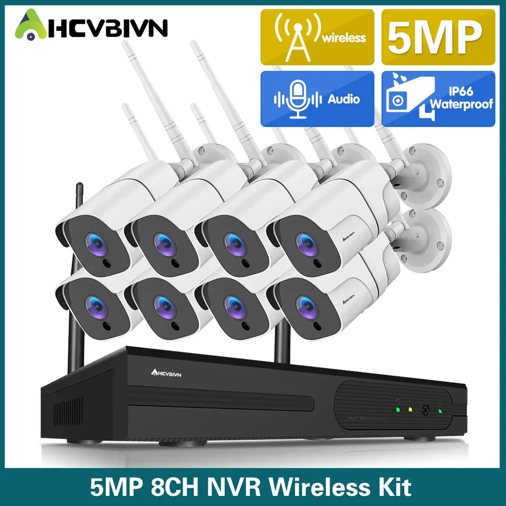 8-канальный Wi-Fi сетевой видеорегистратор комплект 5 Мп наружная водонепроницаемая IP-камера безопасности Wifi беспроводной комплект 8CH CCTV камера видеонаблюдения система камеры комплект