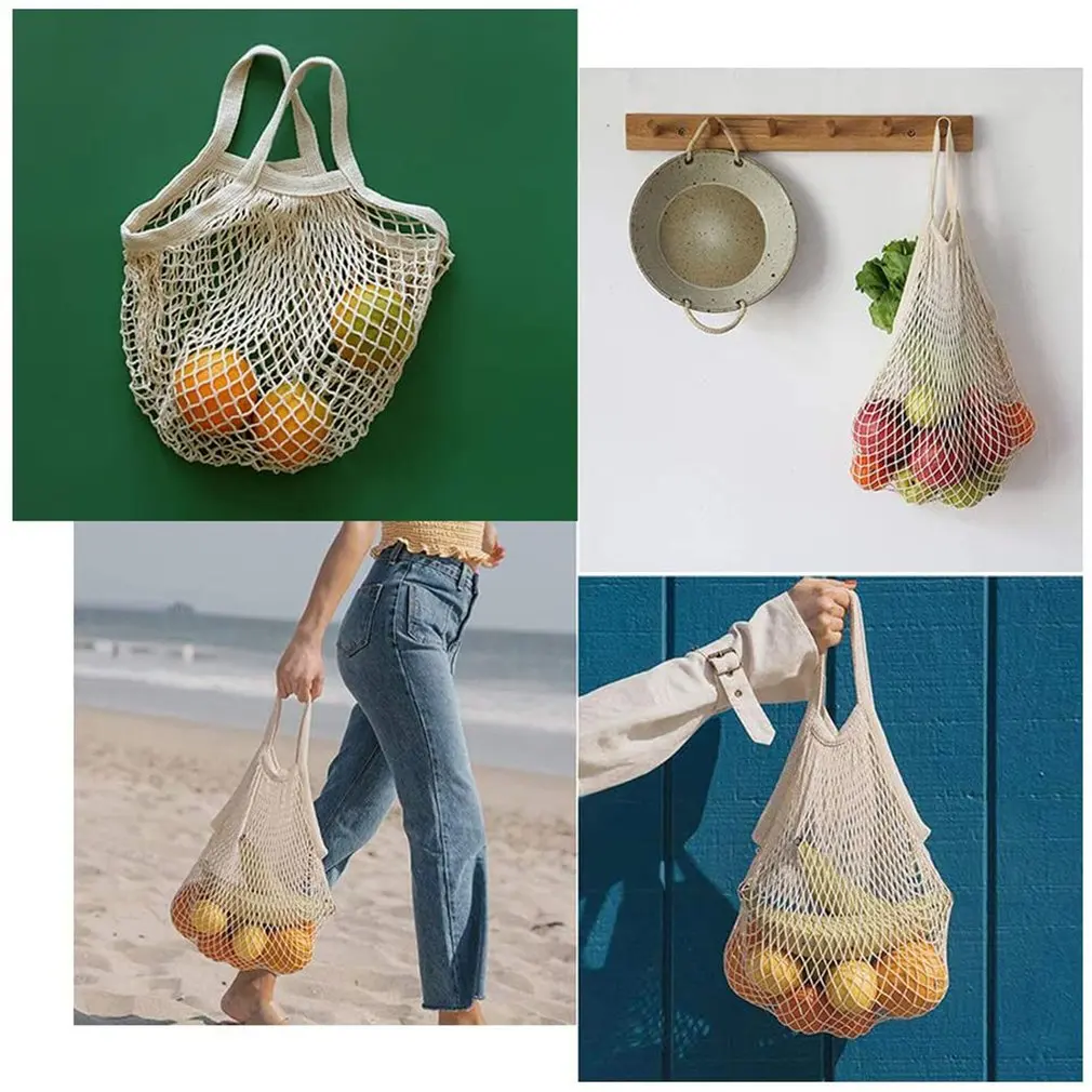 1. Прочный материал: 100% хлопковая сетка для покупок, прочная, Экологически чистая и хорошая воздухопроницаемость для хранения. Машинная стирка в холодной воде, легко Сохнет без опрокидывания.