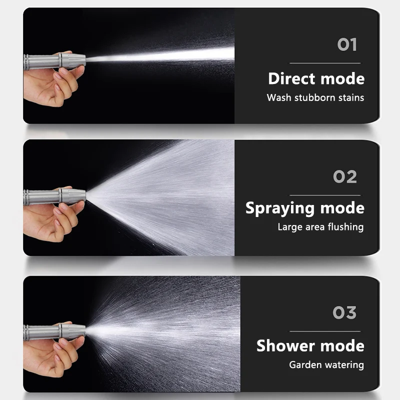 Особенности:** Хорошее качество: Изготовлен из высококачественного пластика, долговечный и долговечный, идеально подходит для ухода за вашим садом, газоном, травой и цветами.** Регулируемые водные узоры: он оснащен распылителем, чтобы предложить три модели полива. Простота в использовании, не более сложная работа.** Эргономичный дизайн: удобная ручка, разработанная с противоскользящим покрытием, вы не будете чувствовать боль даже в течение длительного времени.** Дальнее расстояние струи: он имеет мощное струйное распыление на расстоянии до 15 м. Протяните руку.** Многофункциональный: полив растений и цветов, очистка подъездной дорожки, мытье автомобиля, даже использовать его, чтобы дать вашей собаке ванну.** Широко используется: насадка для садового шланга является идеальным помощником для сада, лужайки, травы, домашнего хозяйства, автомобиля и цветочных бусин.** Идеальный подарок: распылитель шланга может стать отличным подарком.** Использование: подходит для большинства кранов.