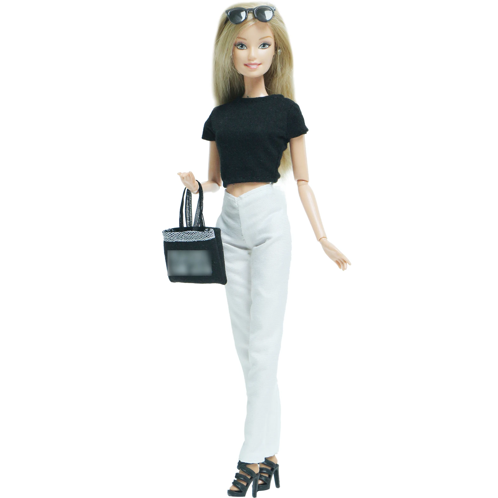 5 шт.товар, футболка-1 шт., брюки-1 шт., очки-1 шт., обувь-1 шт., сумка, повседневная одежда для Барби, яркий подарок