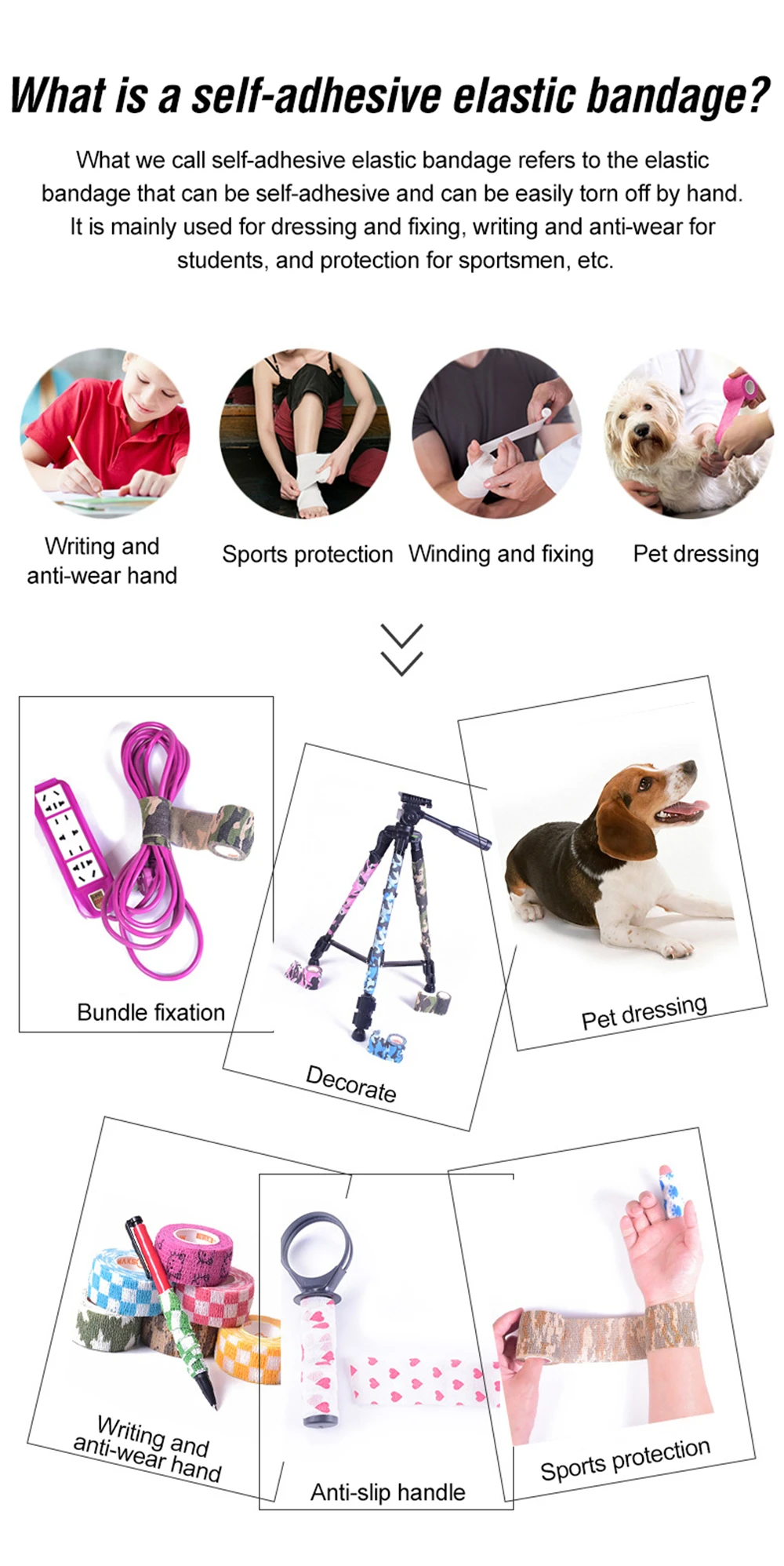Самоклеящийся, не приклеивается к волосам и кожеИзбегайте вторичного повреждения раныЛегко рвать вручнуюЭластичный нетканый материалВоздухопроницаемая комфортная обувьИспользуется для большинства мероприятий на свежем воздухе, кемпинга, пеших прогулок, бега, скалолазания и т. д. также для домаИз-за различных мониторов и условий освещения цвета могут немного отличаться от приведенных на фотографиях