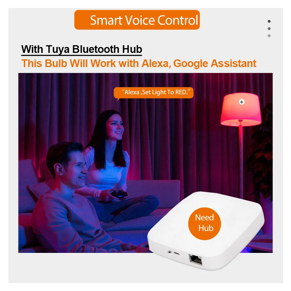 Умная Светодиодная лампа Tuya с Bluetooth, 15 Вт, E27, Alexa, Google, управление голосом, RGB, CW, WW, светодиодная лампа с регулируемой яркостью для украшения комнаты