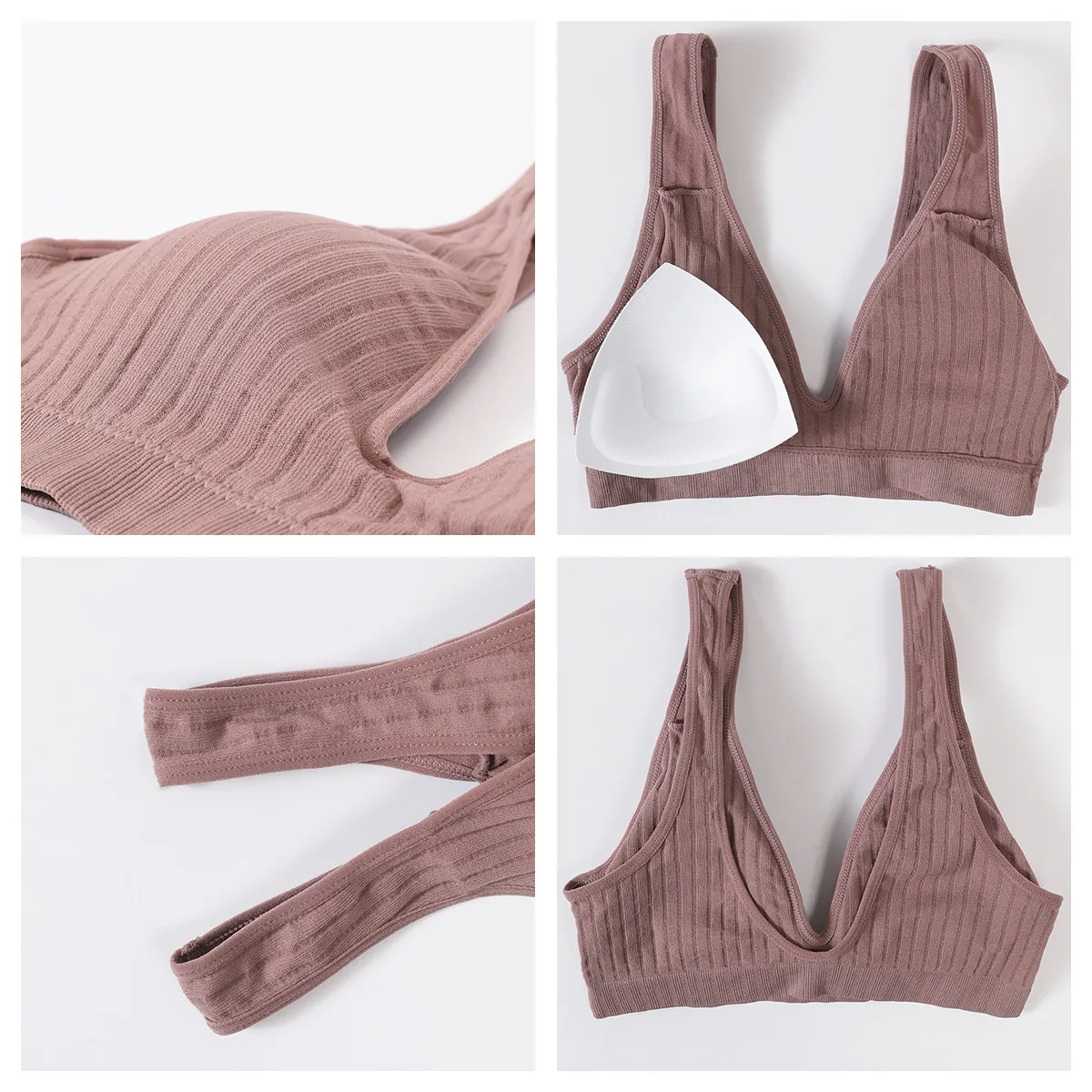 Бюстгальтер и трусы женские, бесшовный укороченный топ с глубоким V...