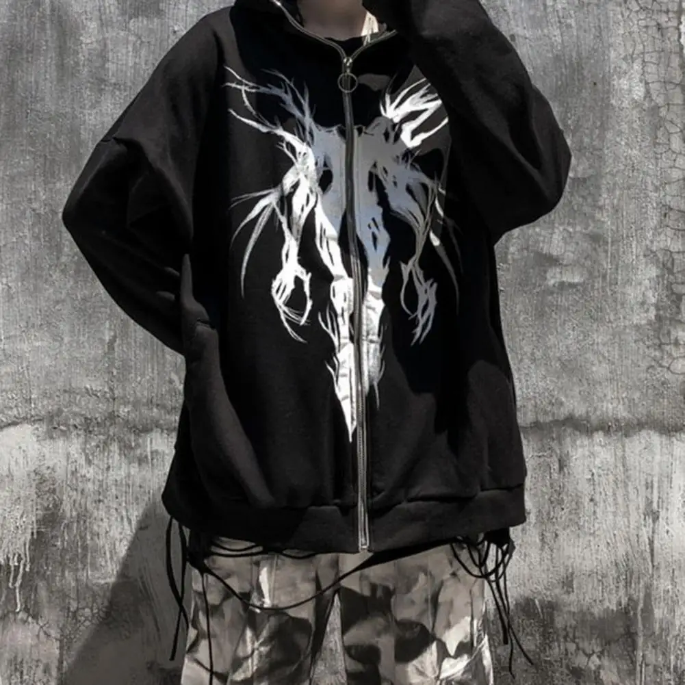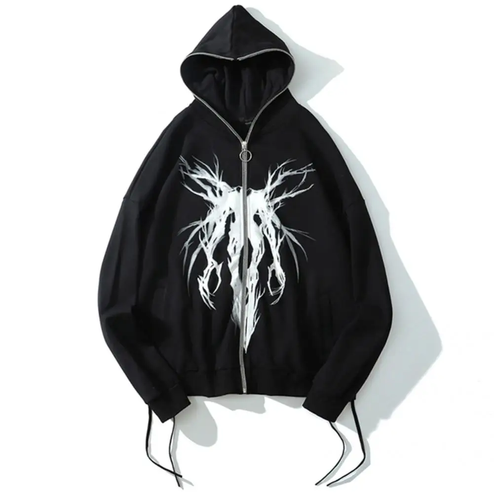 Толстовка с капюшоном и принтом на молнии для мужчин и женщин