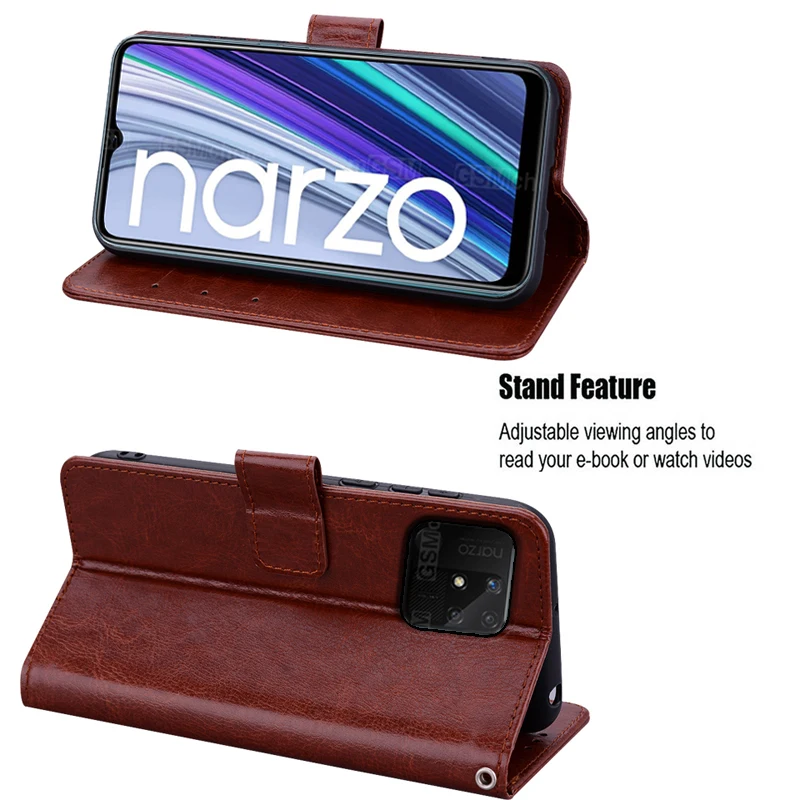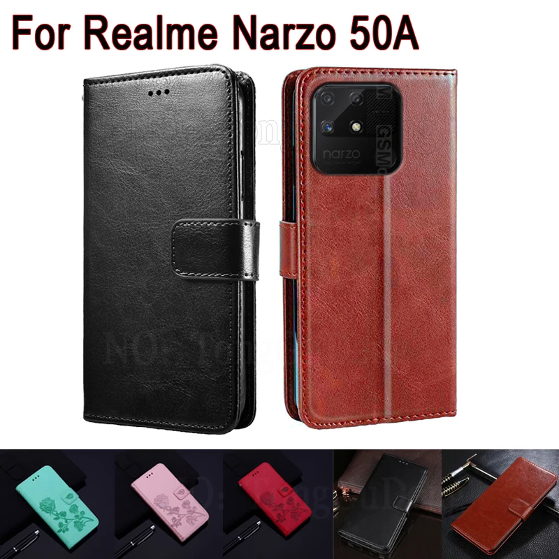 Кожаный чехол-книжка Narzo50A для Realme Narzo 50A, защитный чехол для телефона, чехол-бумажник для Realme RMX3430
