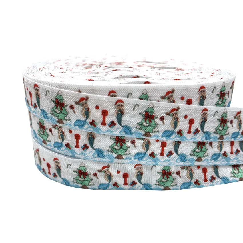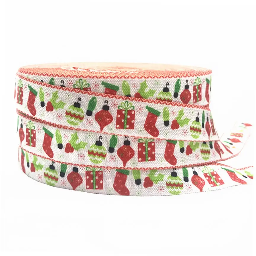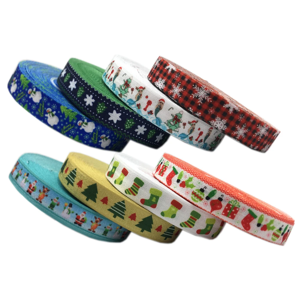 10 ярдов 16 мм Рождественский снеговик подарок олень напечатанный складной над эластичной лентой