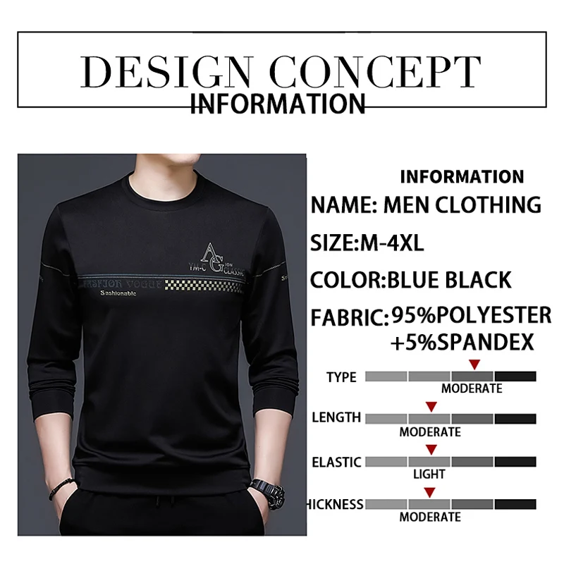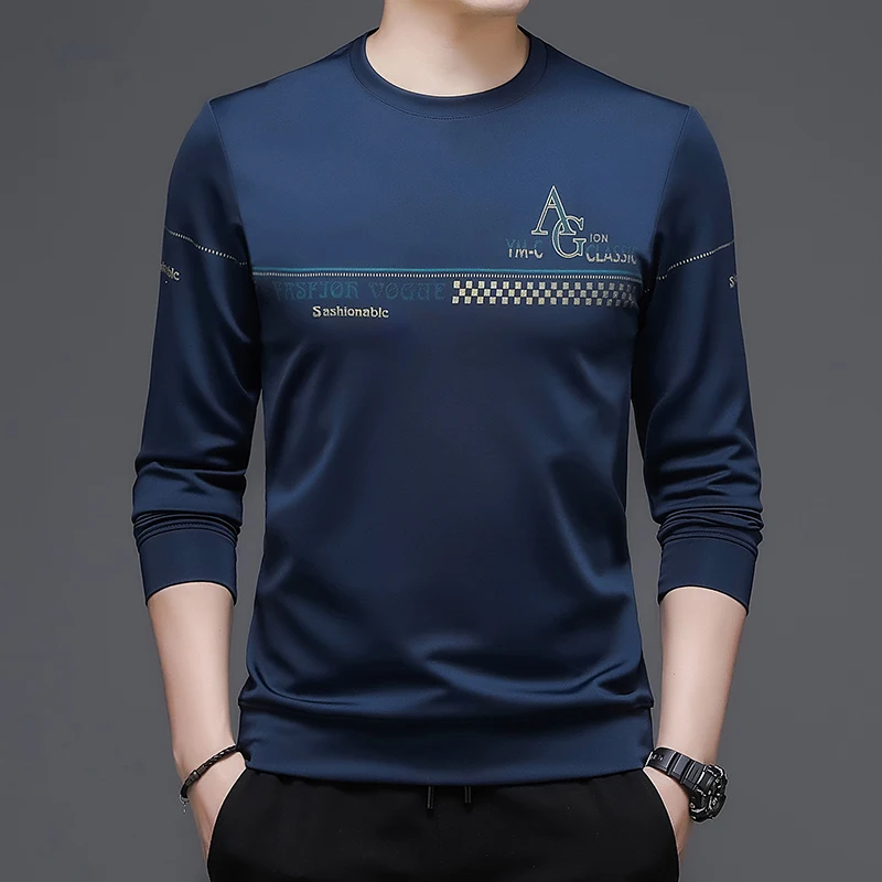 Новое поступление мужской футболки TFETTERS, осенняя одежда 2021, футболки с длинным рукавом и круглым вырезом, модные повседневные мужские футболки с защитой от морщин