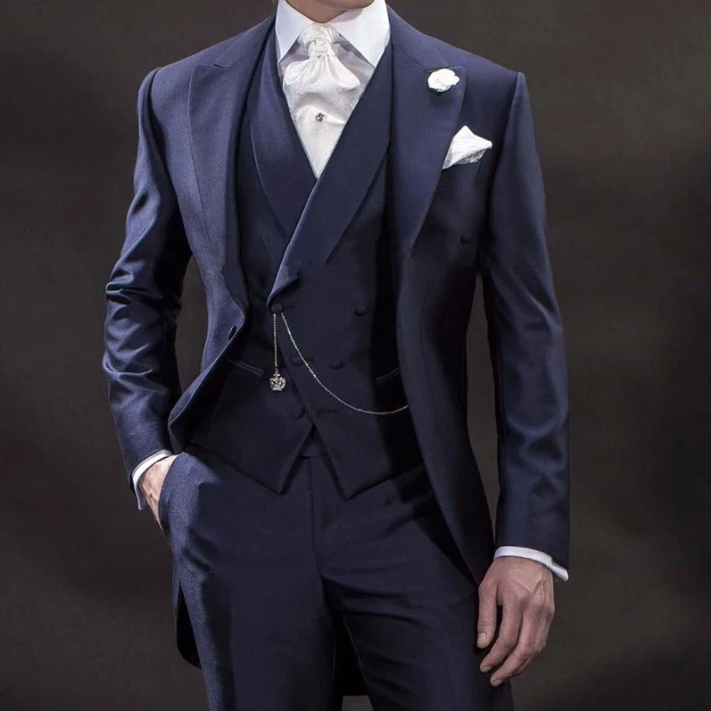 Мужской костюм 2021 года, 3 предмета, темно-синий цвет, мужская задняя одежда, смокинг, облегающий костюм, мужская куртка, брюки, жилет