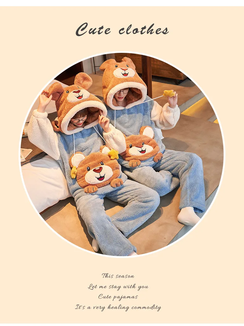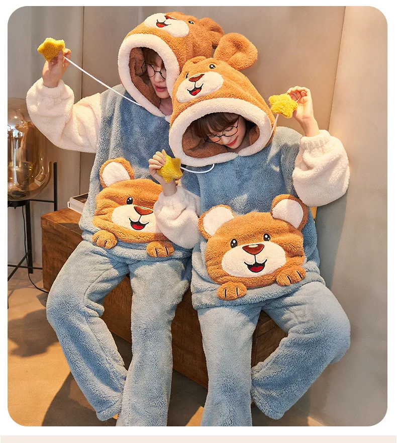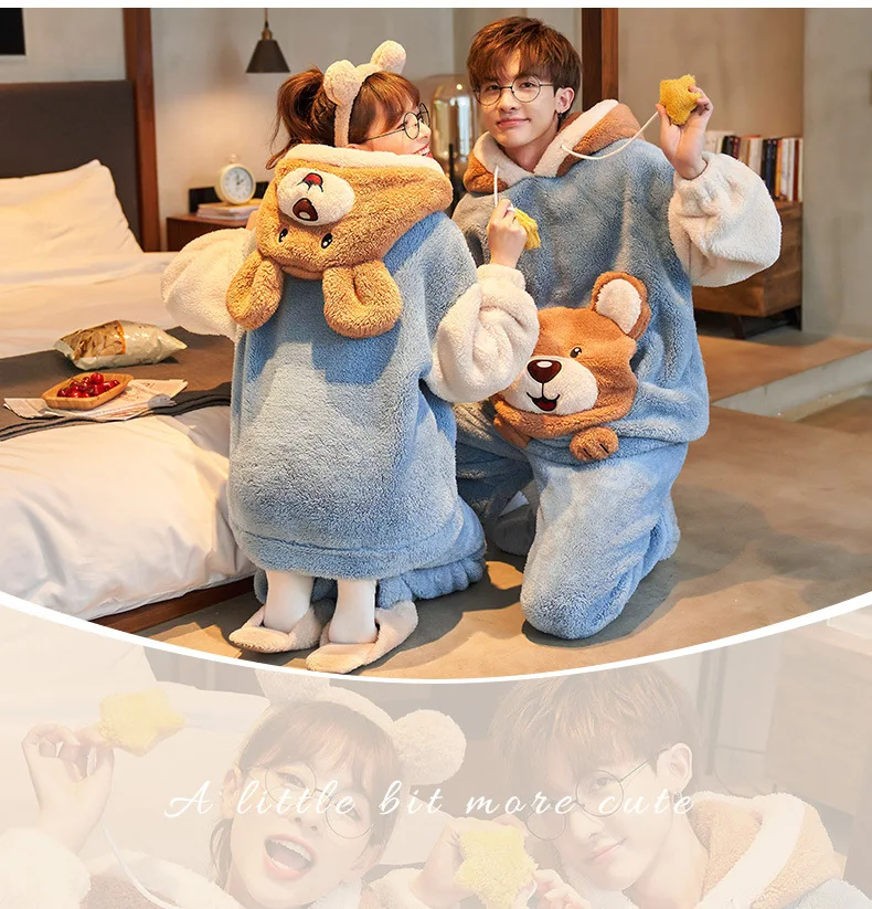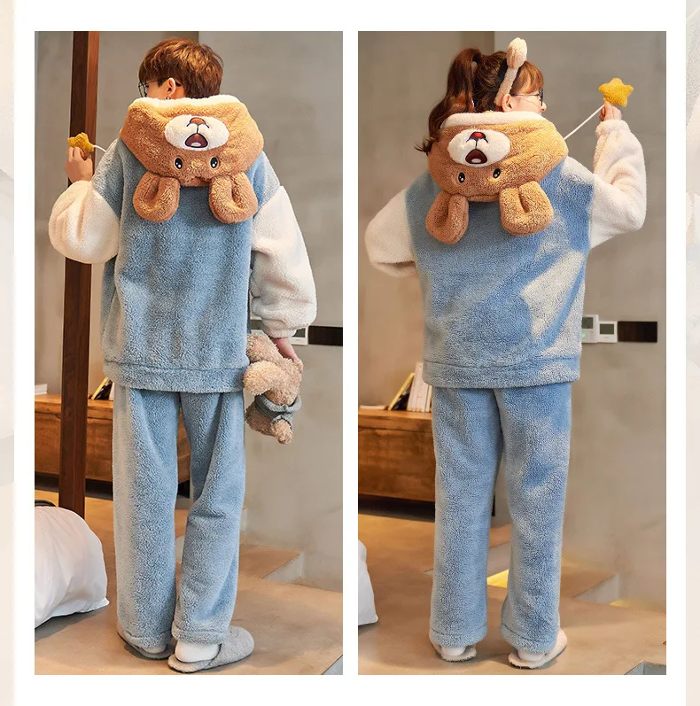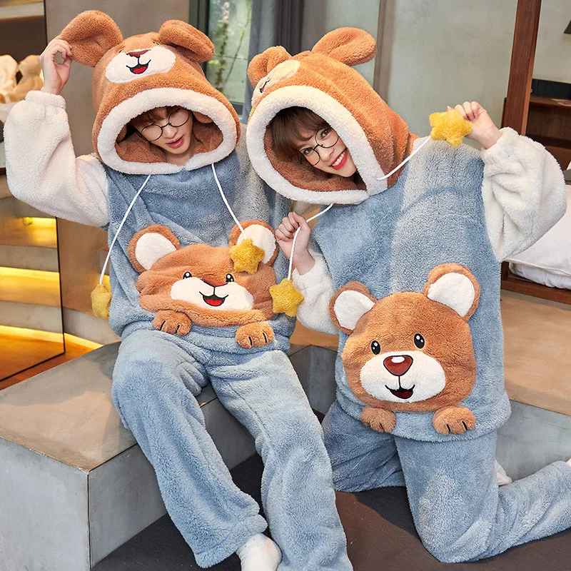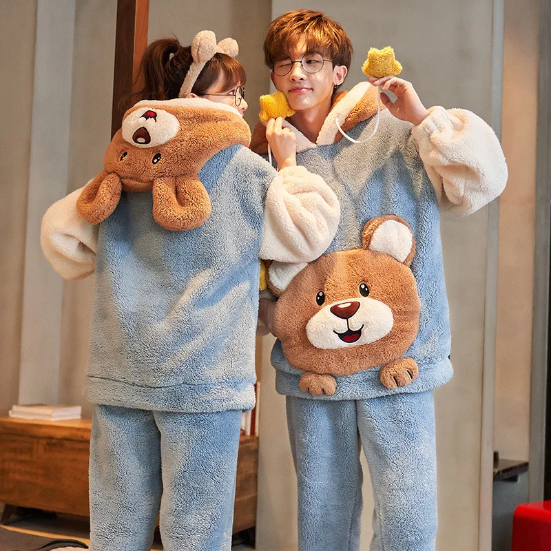 Зимние пижамы для пар, женские и мужские комплекты, Корейская утепл...