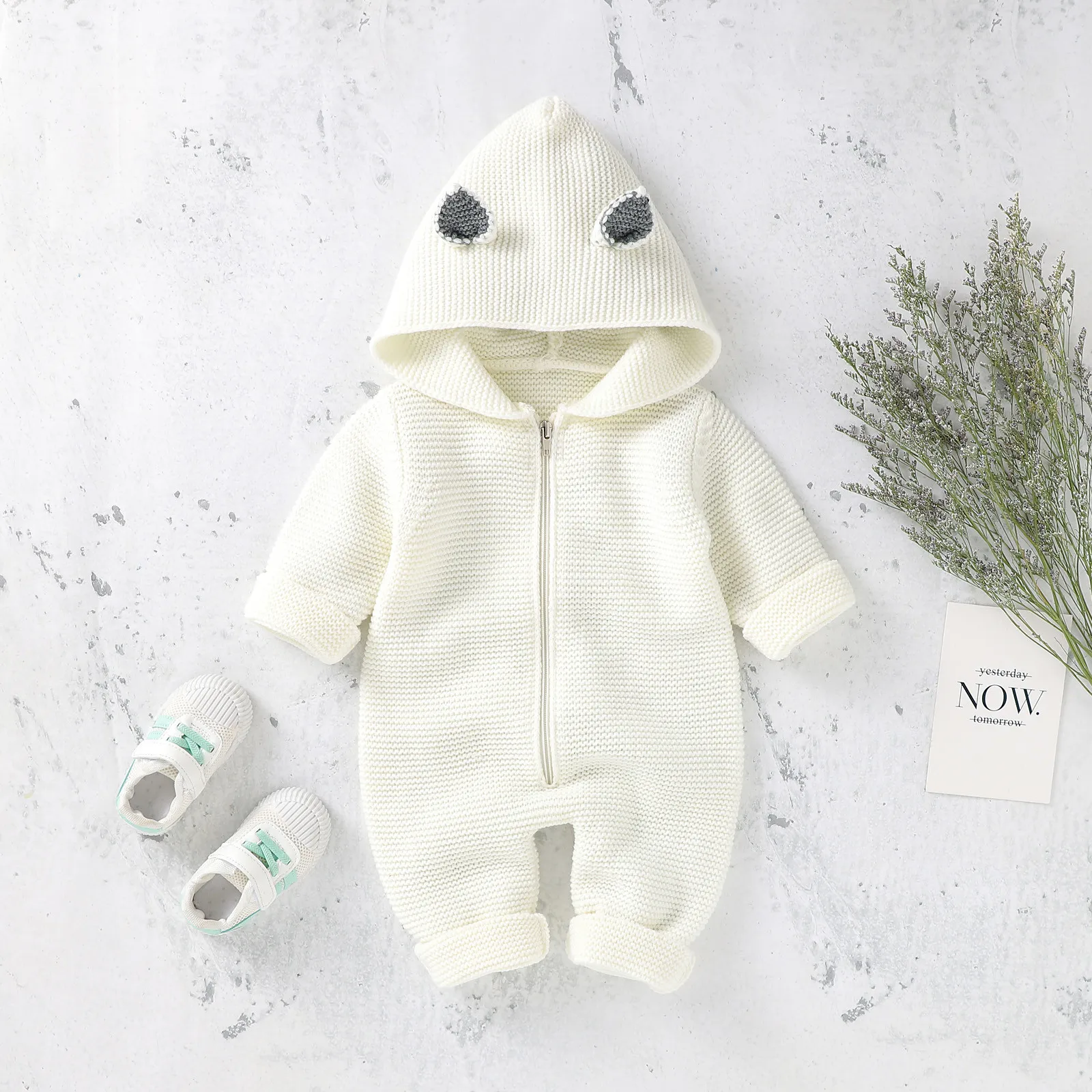 Зимний Детский комбинезон с капюшоном, милый однотонный Теплый Вязаный комбинезон с длинным рукавом, Одежда для новорожденных, комбинезон для новорожденных H1
