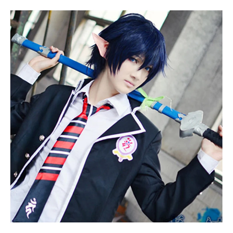 Ao no Blue Exorcist Okumura Rin Blue Короткие термостойкие волосы Perucas Косплей Костюм парик + Бесплатный парик