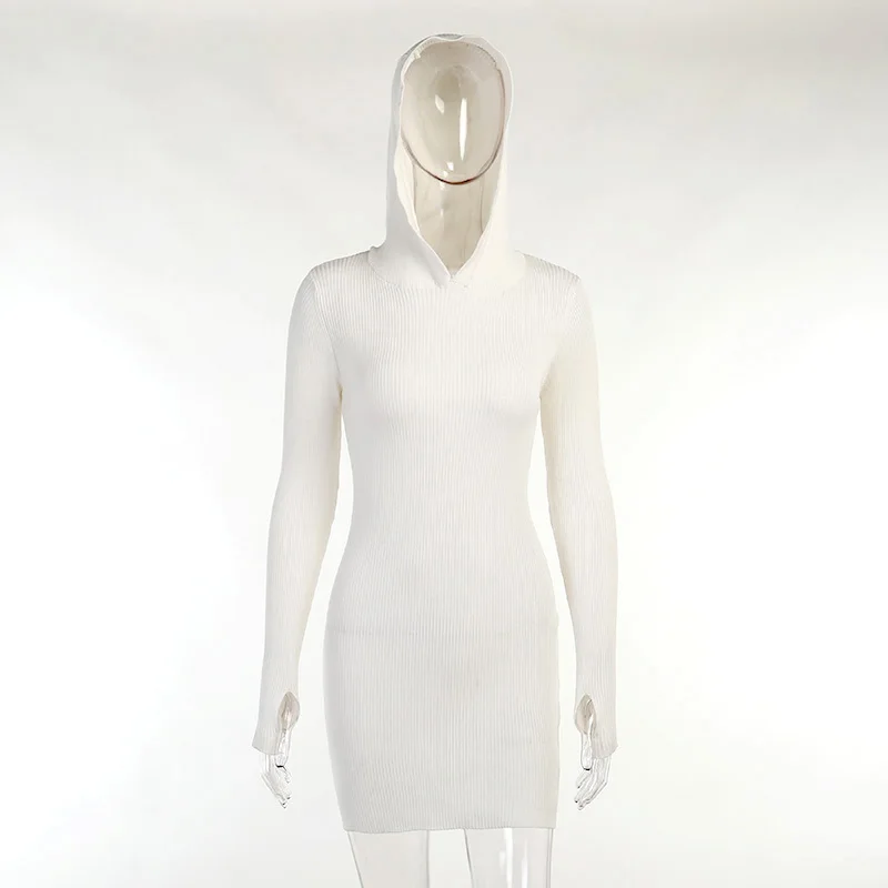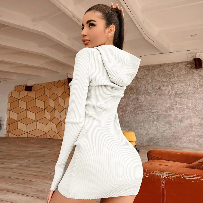 Женское трикотажное повседневное мини-платье с капюшоном, облегающее однотонное элегантное офисное платье с длинным рукавом, модель 2021 на осень