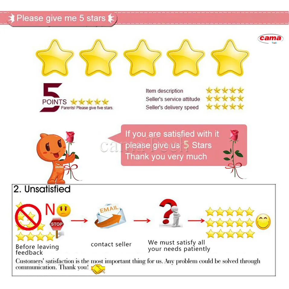 Ваши отзывы очень важны для развития нашего бизнеса, поэтому, пожалуйста, оставьте отзывы 5 звезд, если вы удовлетворены нашей продукцией, большое спасибо.
