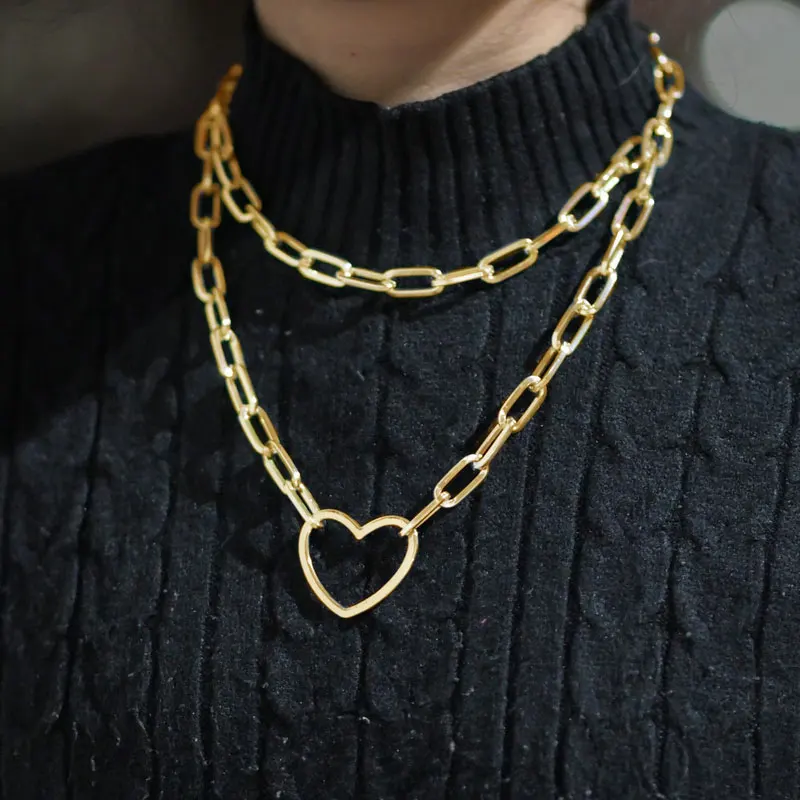 Ожерелье из звеньев, модное ожерелье-чокер с цепочкой в форме сердц...