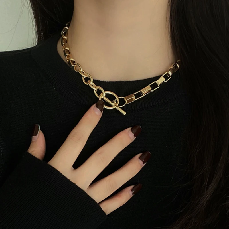 Женская Толстая Поворотная цепь, золотистая массивная цепочка-чокер, вечерняя бижутерия, аксессуары для женщин, 2021