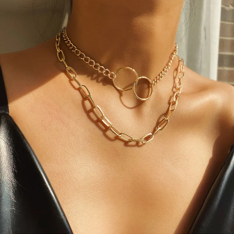Винтажные ожерелья с золотыми цепочками для женщин, многослойное ож...