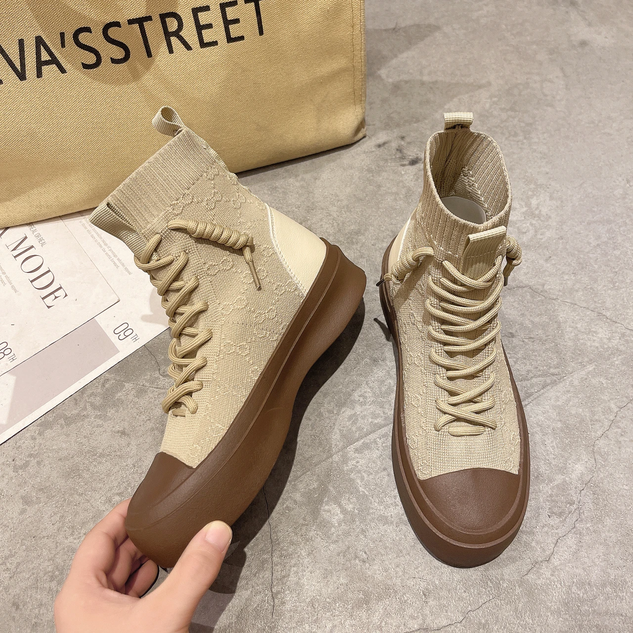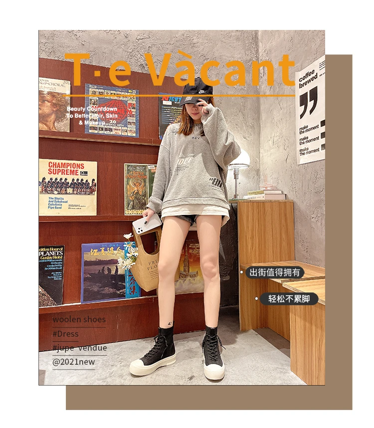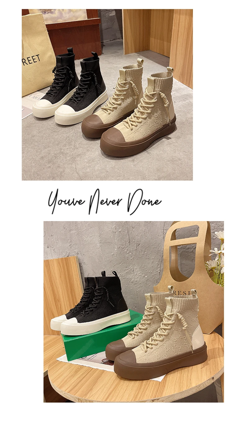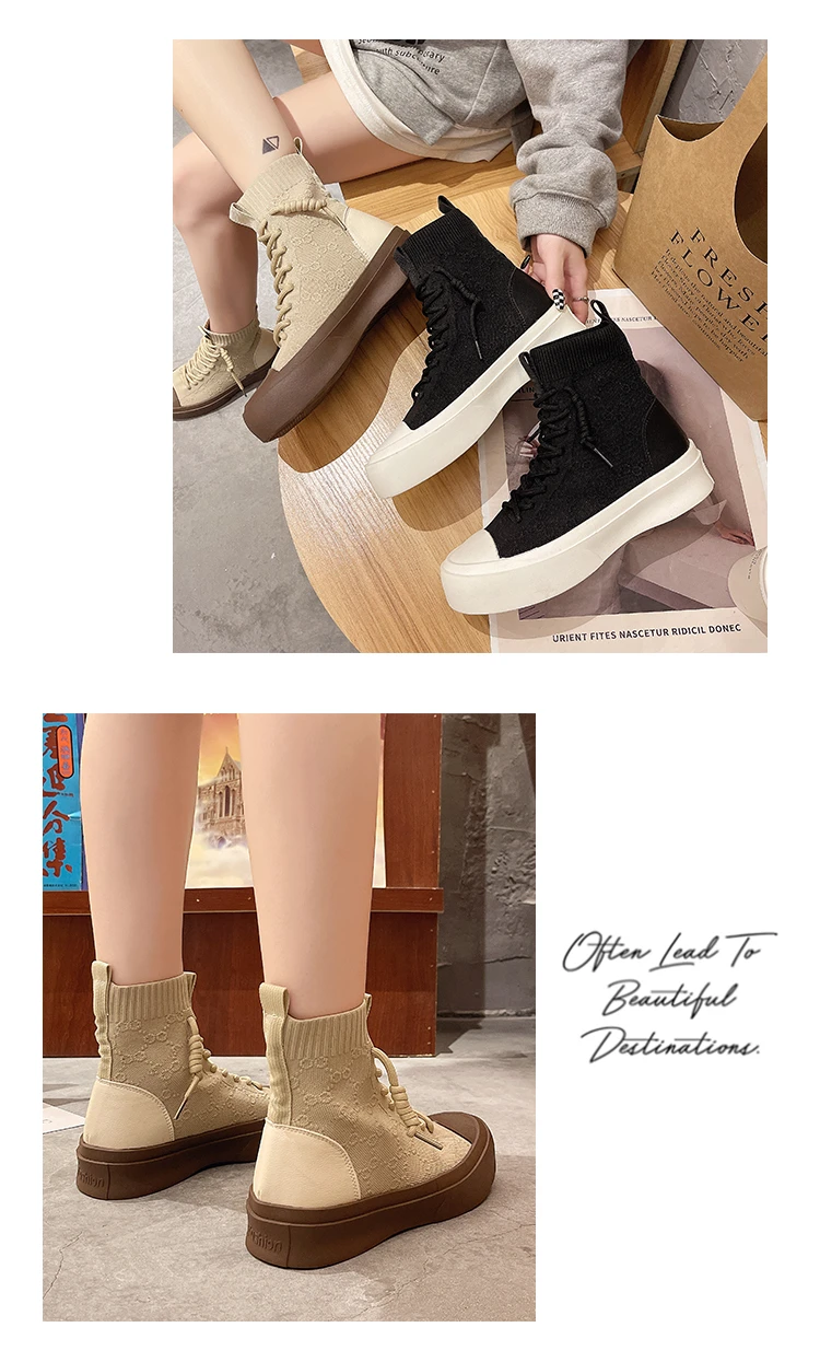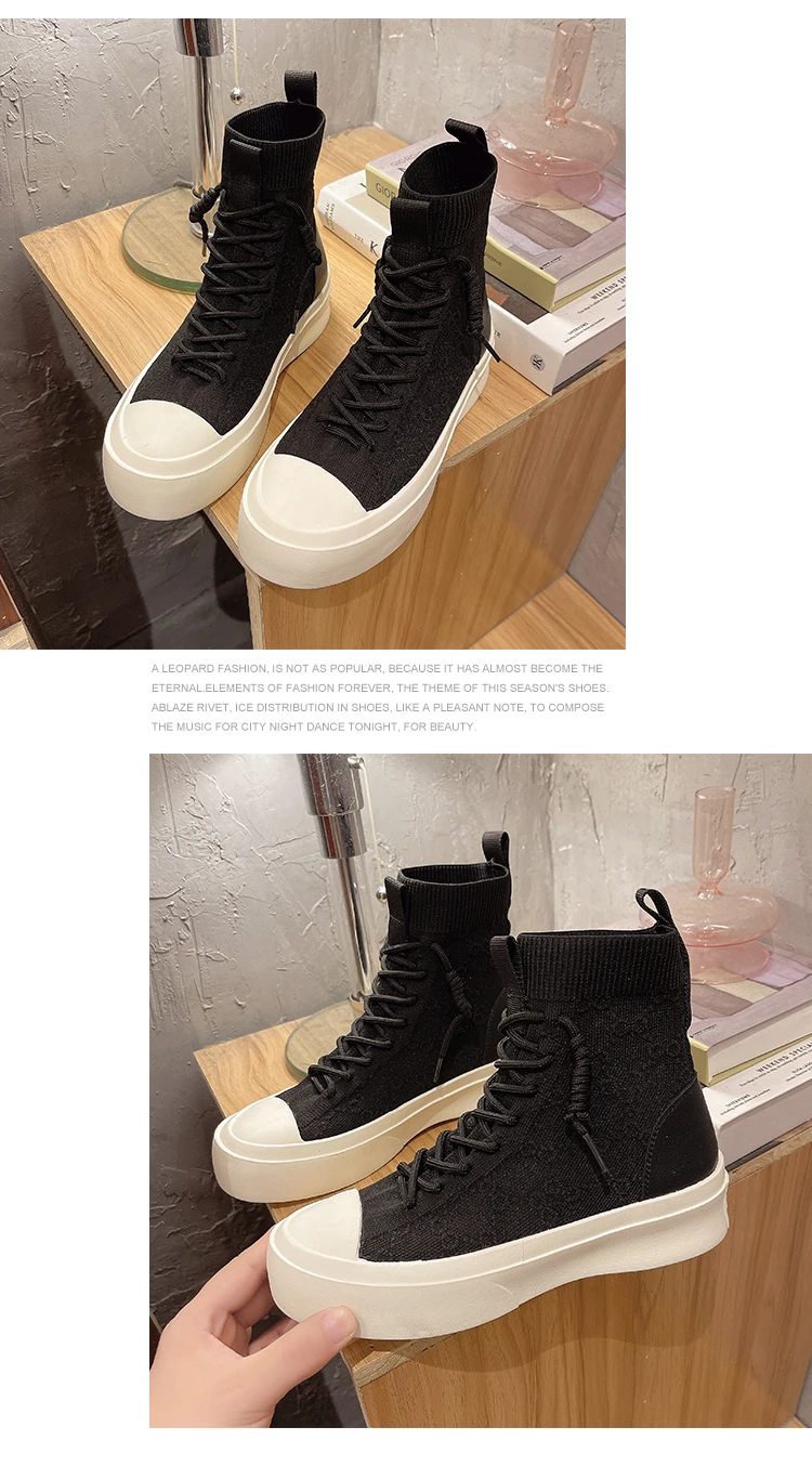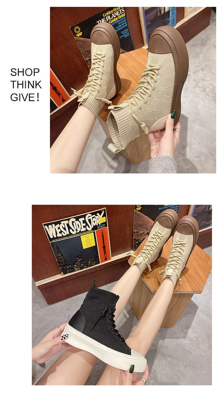 Женские высокие сапоги из эластичной ткани на шнуровке, сезон весна-осень 2021, повседневная Студенческая женская обувь для отдыха, сапоги с массивной подошвой и круглым носком