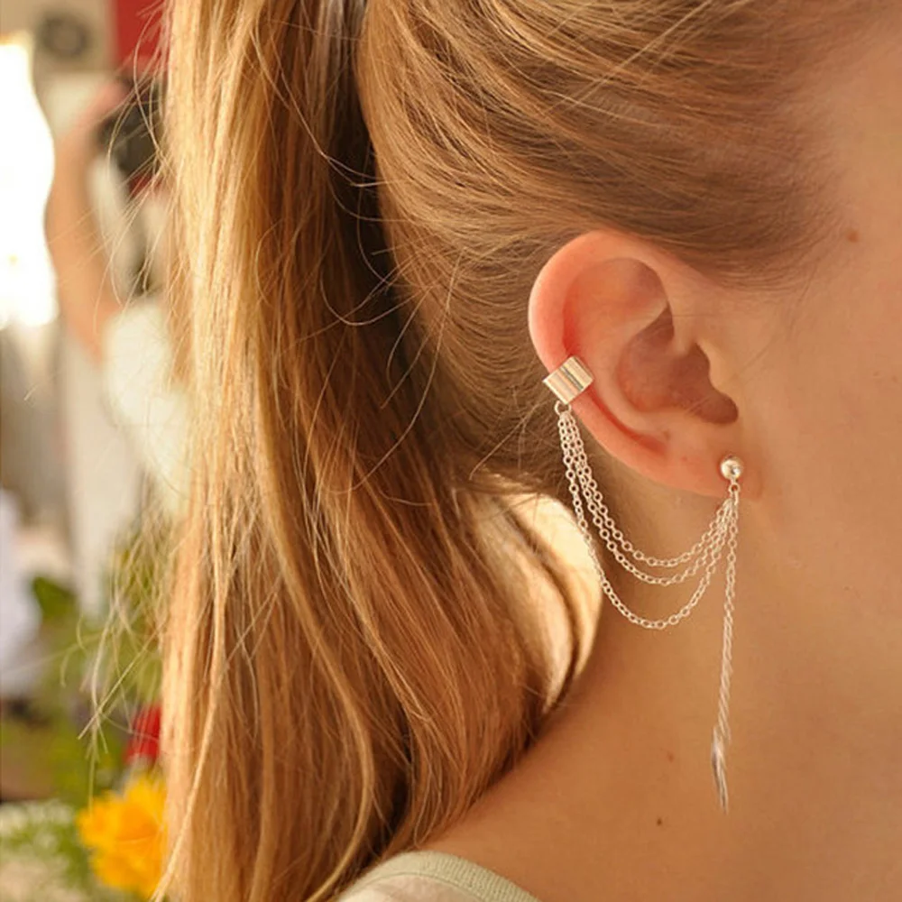 Женские серьги-каффы с длинной кисточкой, в Корейском стиле, 1 шт.
