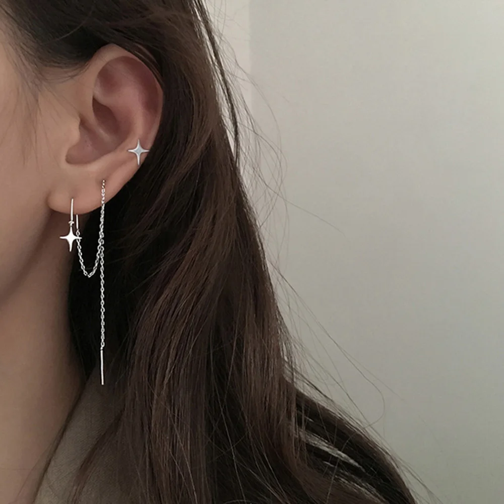 Простые блестящие серьги-гвоздики в форме звезды с длинной цепочкой...